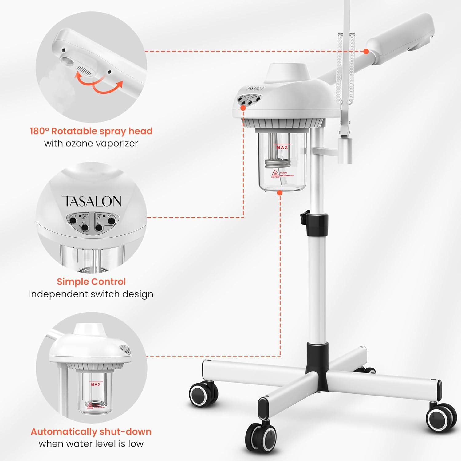 TASALON 2-in-1 Professional Facial Steamer with 5X Magnifying Lamp, Esthetician Steamer on Wheels, White, Facial Steamer, Cleansing, Hydrating, Pore Treatment
