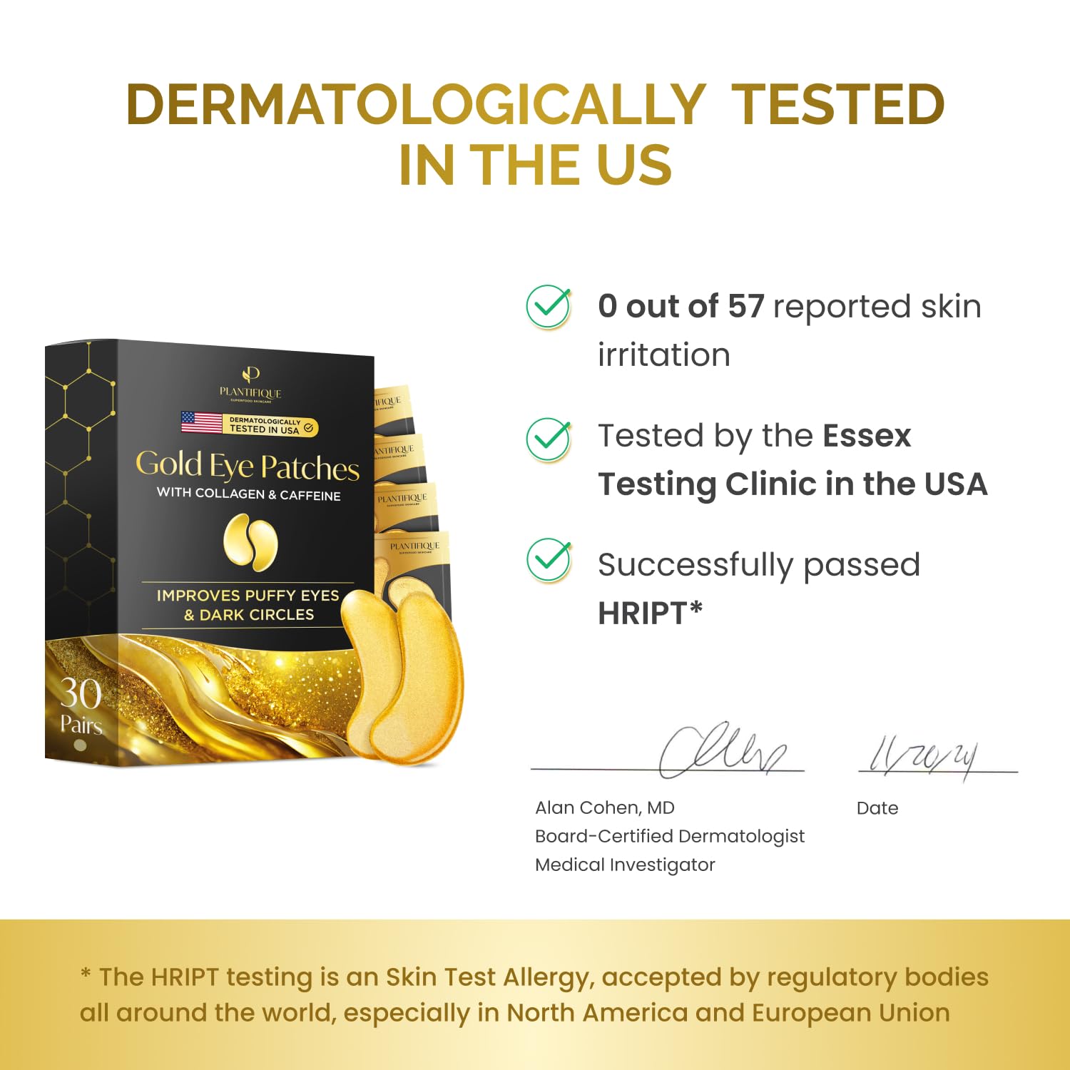PLANTIFIQUE Gold Under Eye Patches for Puffy Eyes 40 Pairs | Under Eye Masks for Dark Circles | Puffiness Eye Gels with Collagen & Caffeine | Anti Aging Gold Eye Mask Skincare