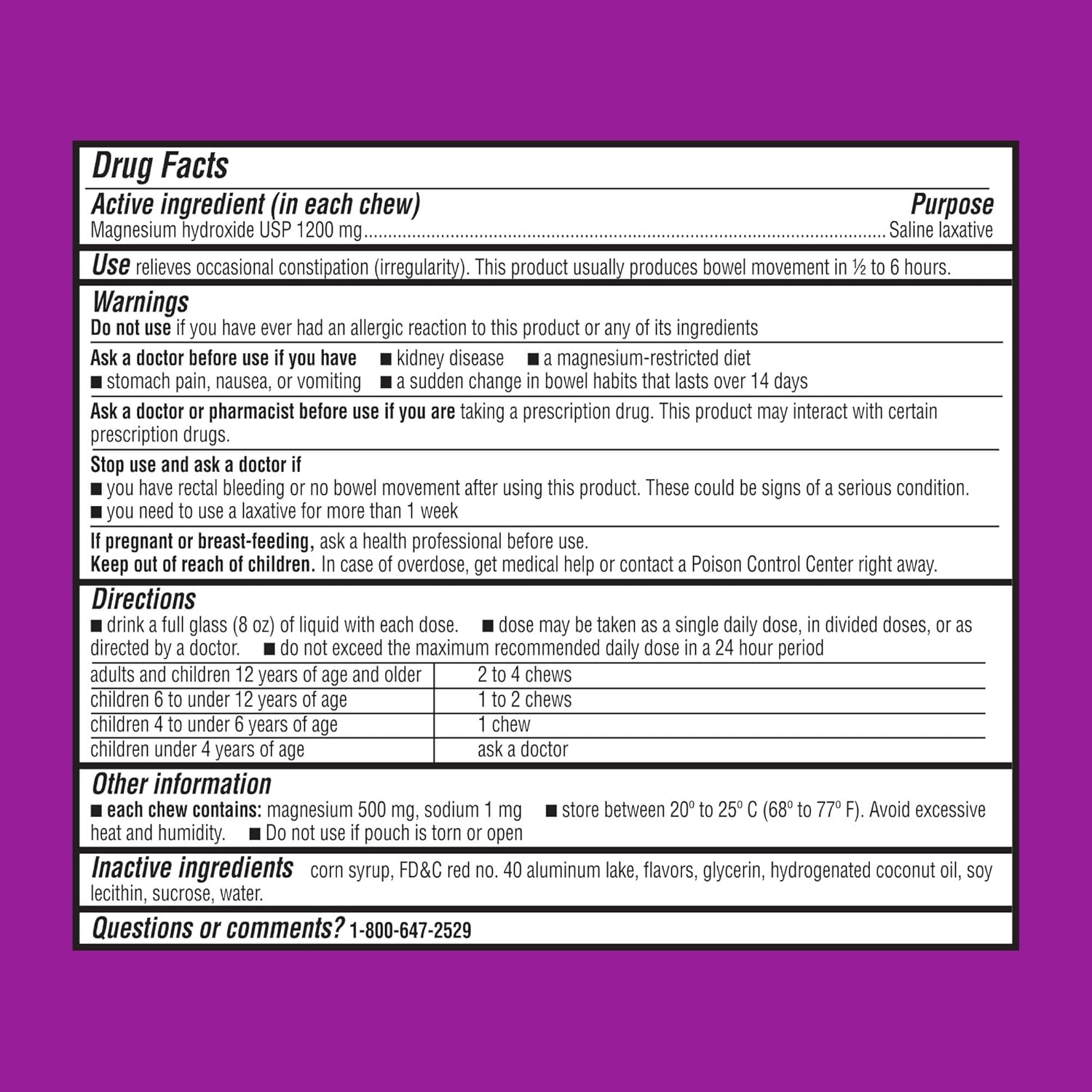 MiraFAST Soft Chews, from The Makers of MiraLAX, Gentle Constipation Relief, Fast Acting Laxative, Stimulant Free Saline Laxative, Magnesium Hydroxide, Blueberry & Raspberry Flavor, 60ct