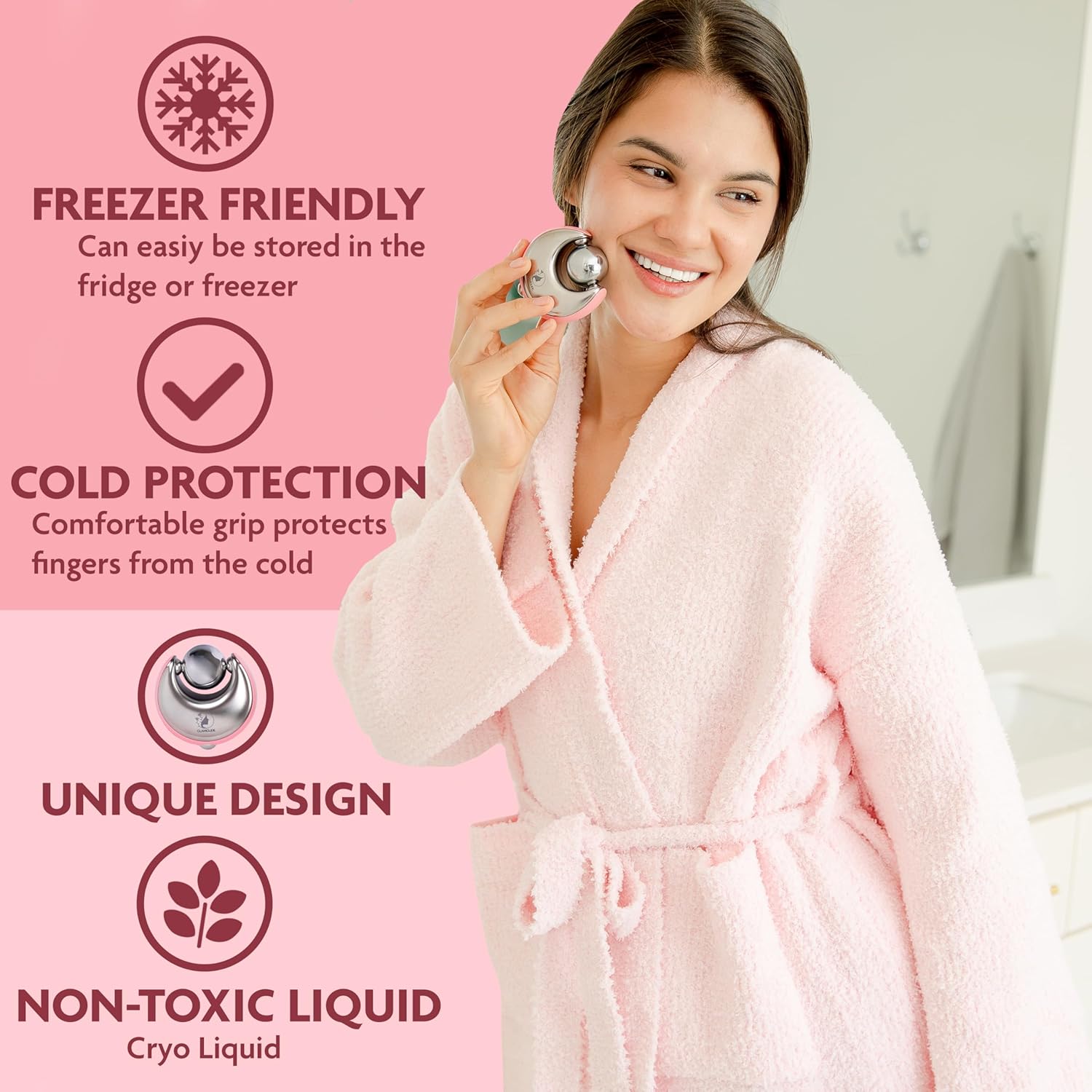 Cryo-Infused Ice Roller for Face Women Pack of 2 - Ergonomic Facial Ice Roller for Eyes, Cheeks, Nose, Mouth, Neck - Travel Freezer Face Depuffer Massager - Skincare Beauty Ice Globes for Face