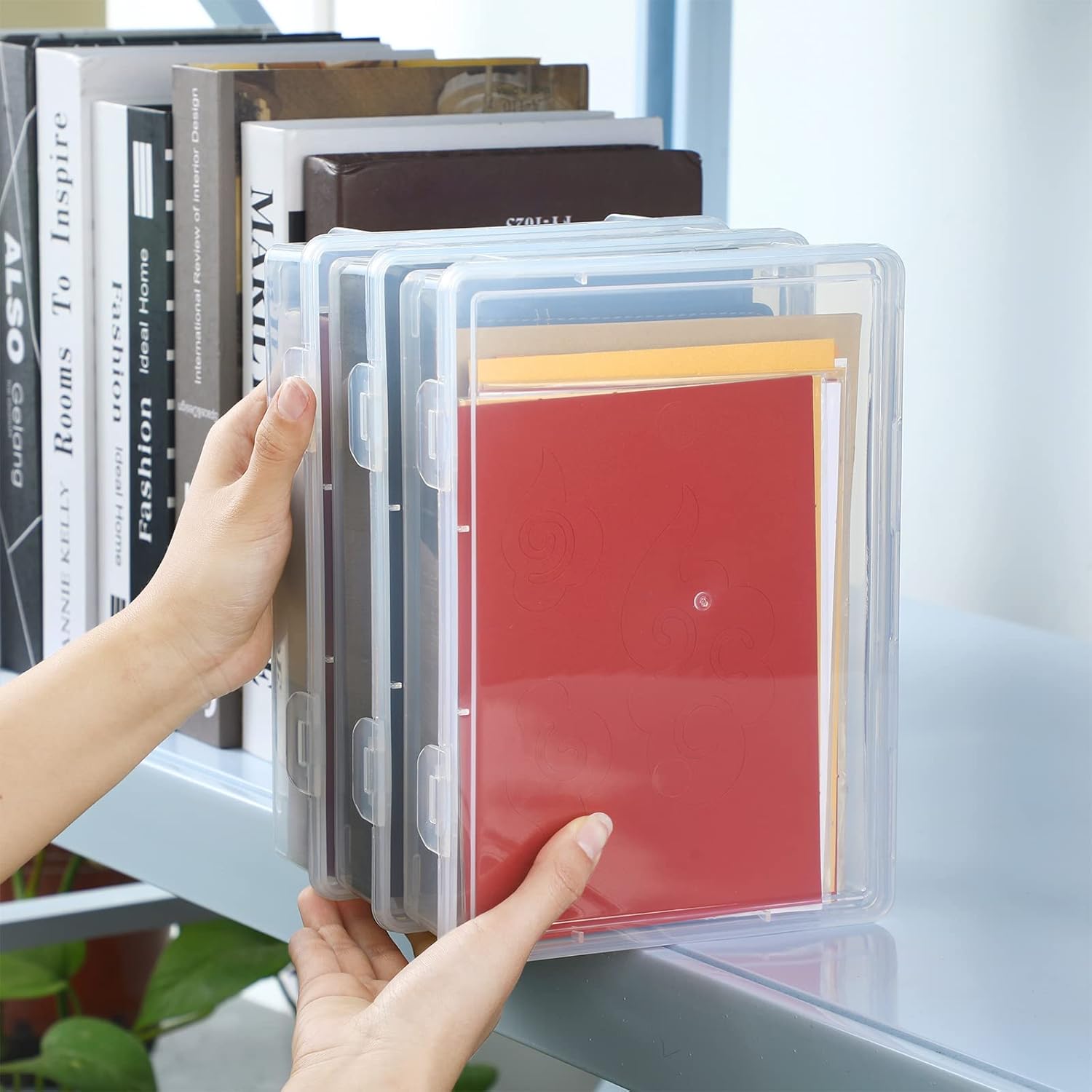Qunclay 6 Pcs 13'' X 9'' X 2'' Plastic Storage Box with Lid Multipurpose Craft Organizers Plastic Containers Clear Pencil Case Art Satchel Storage Case for Beads Ornaments Crafts Accessories