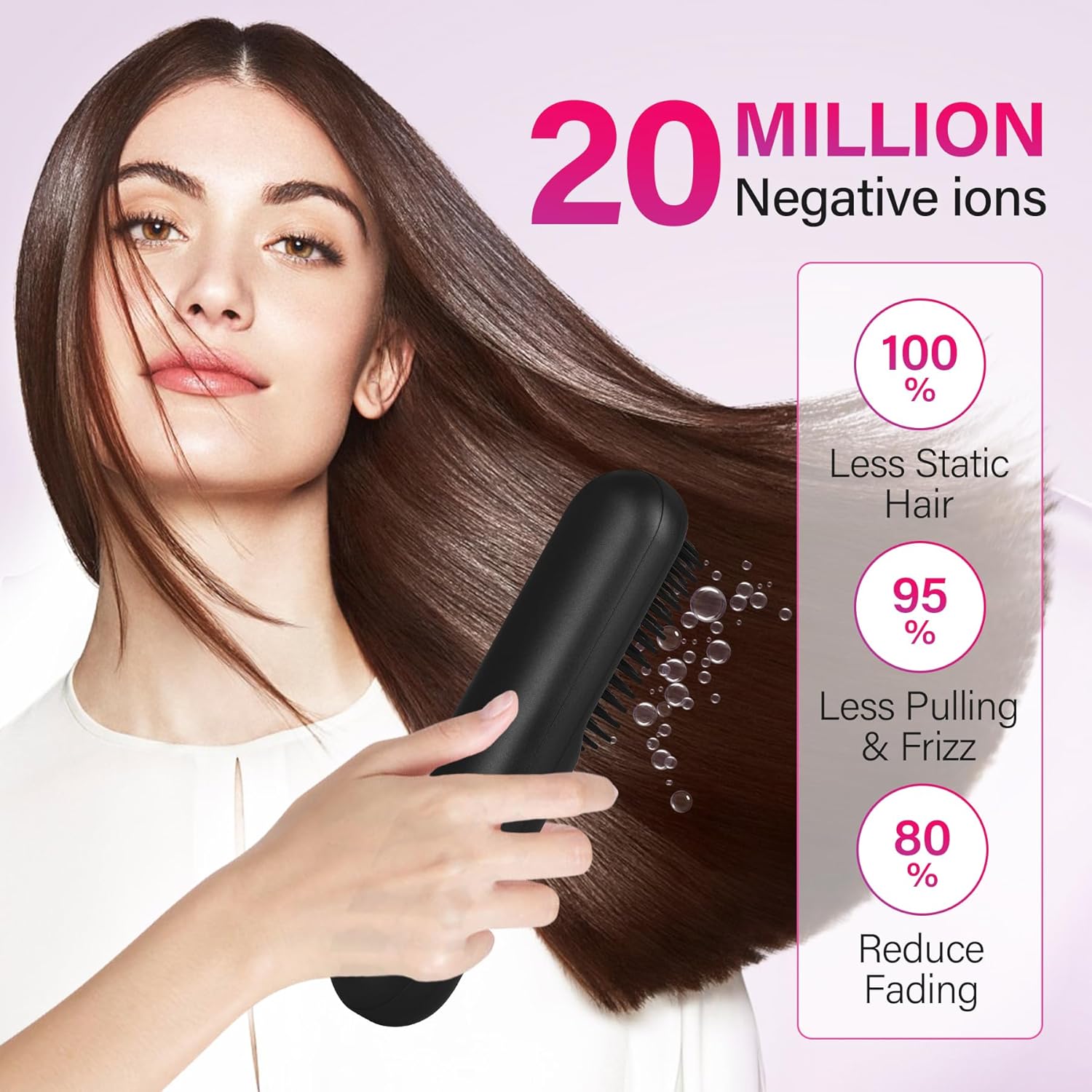 Rechargeable Hot Hair Brush Straightener Heat Pressing Combs Ceramic Electric Straightening Comb, Anti Burn for Natural Black Hair Beard Wigs Holiday Gifts