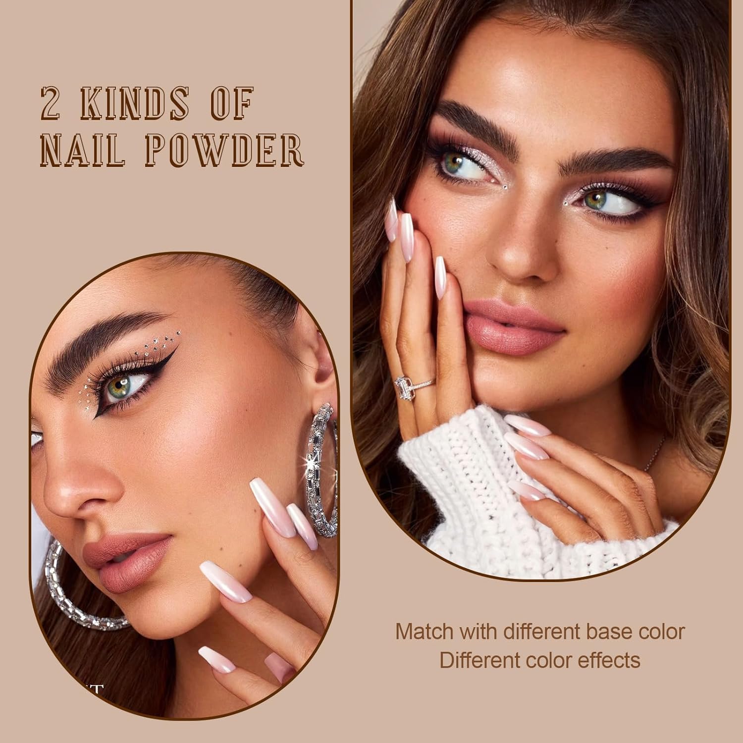 - PACKAGE CONTENTS:2 PCS nail art pearl chrome nail pigment powders. It needs to be used with gel nail polish and no wipe top coat. 1 PCS for white pearl powder, 1 PCS for gold pearl powder. They can make many different design for your gel nail polish