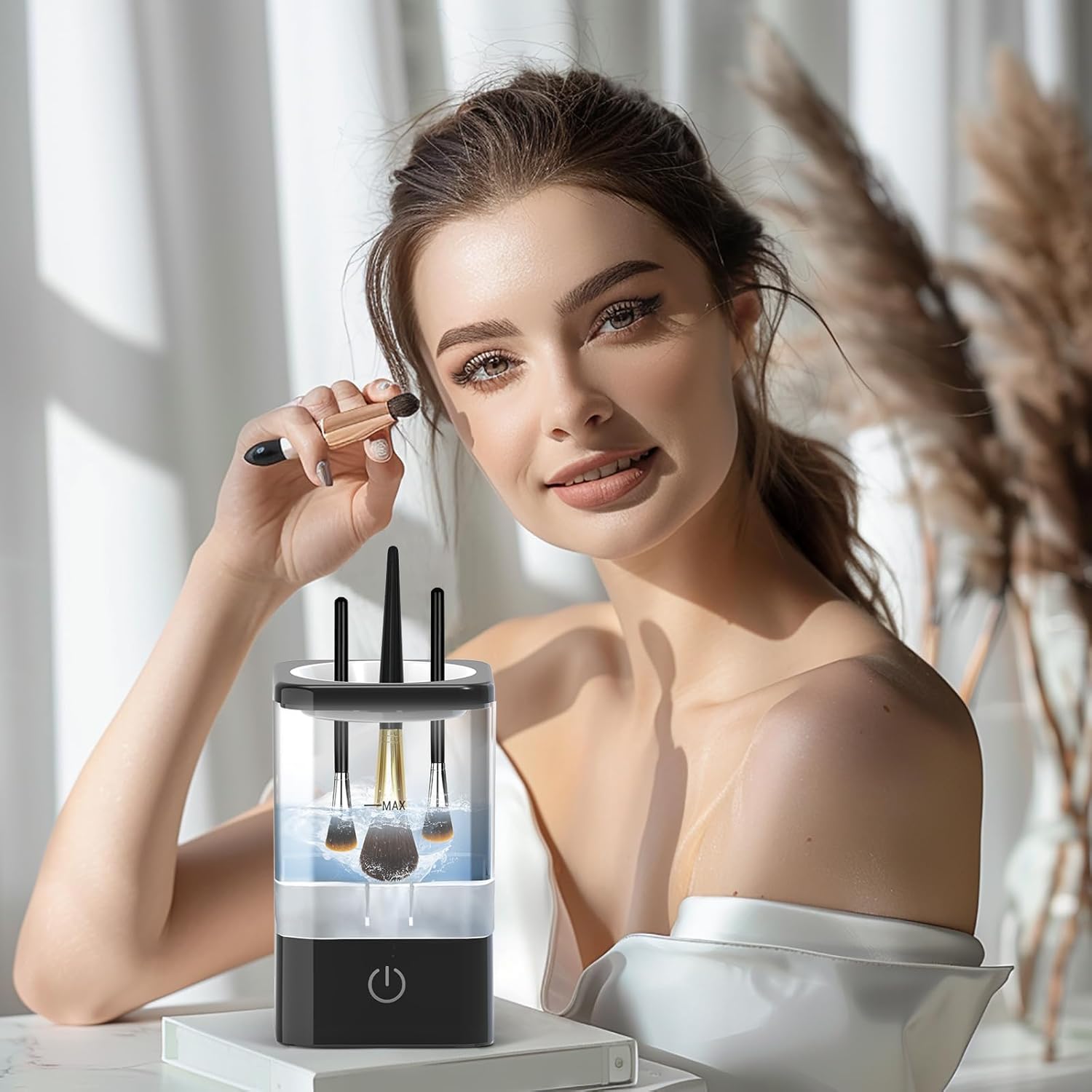 - 【Perfect for Different Brushes】Upgraded automatic makeup brush cleaner is compatible with a wide range of makeup brushes, regardless of their size or shape. From small eyeshadow brushes to larger powder brushes, it tackles them all with ease. No need to worry about damaging your brushes or using multiple cleaners for different brush types.