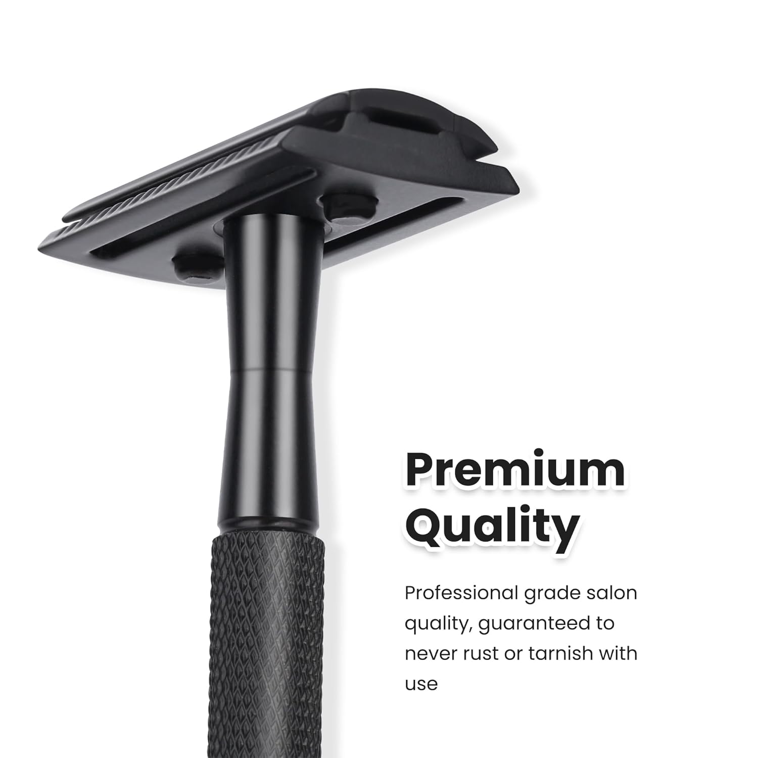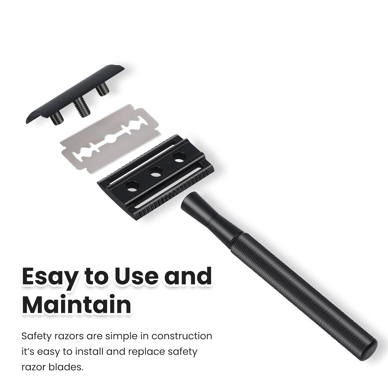 Double Edge Safety Razor With 10 Premium Stainless Steel Blade Reusable Safety Razors For Men Shaving Razor, Smooth Wet Shave Experience, Gun Black