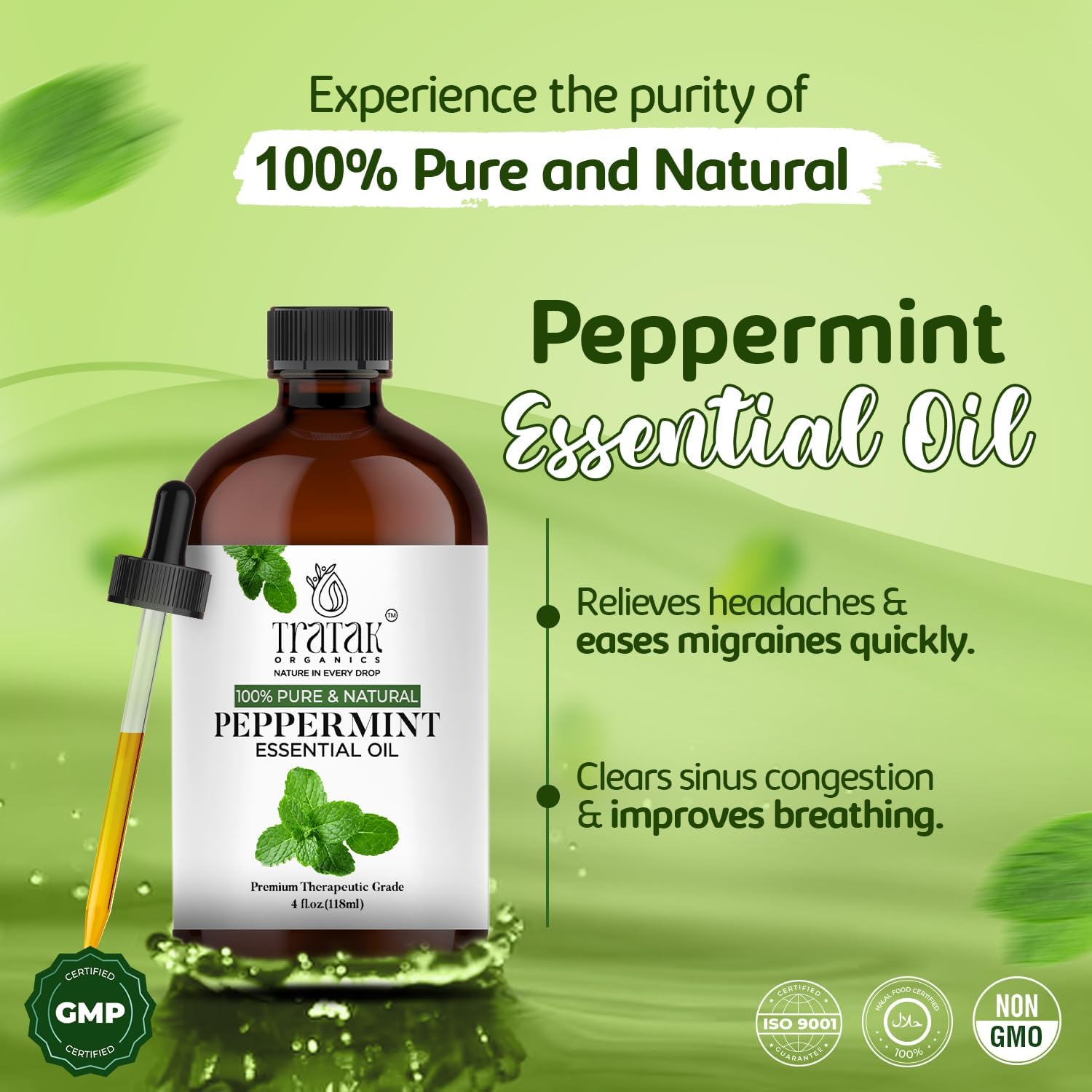 - PACKAGE INCLUDES: Pack of 2 Tratak Peppermint Essential Oil with dropper, Net Weight: 4 Fl Oz