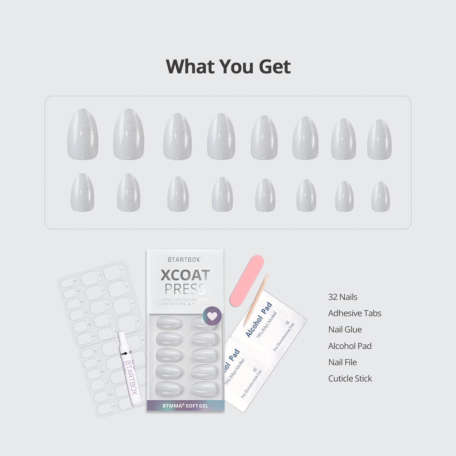 - Everything You Need Included: 32 nails (16 sizes), nail glue, adhesive tabs, nail file, wooden stick, alcohol pads, and easy guide. No guesswork – just perfect nails in a box