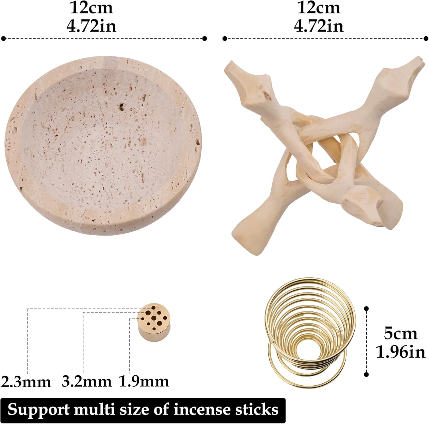 - 【What You Will Receive】: Includes 1 pc 4.72-inch travertine incense holder, 1 pc hand-carved wooden stand, 1 pc palo santo holder, and 1 pc nine-hole incense burner. Please note: White sage bundle and palo santo incense sticks are not included in the package.