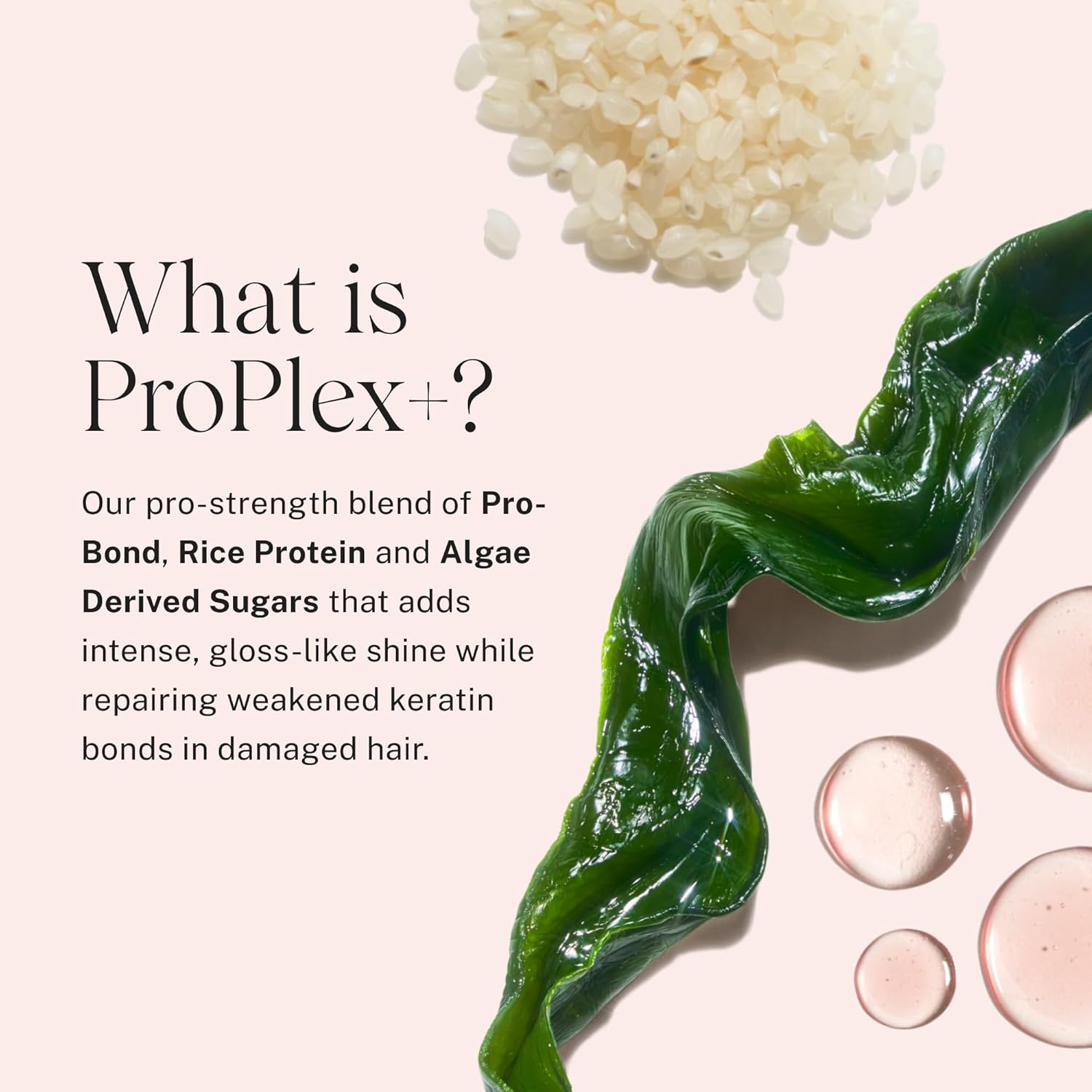 - Innovative ingredients – Formulated with Pro-Plex+, A pro-strength blend of Pro-Bond, Rice Protein and Algae Derived Sugars that adds intense, gloss-like shine while repairing weakened keratin bonds in damaged hair. Color-safe, vegan and cruelty-free.