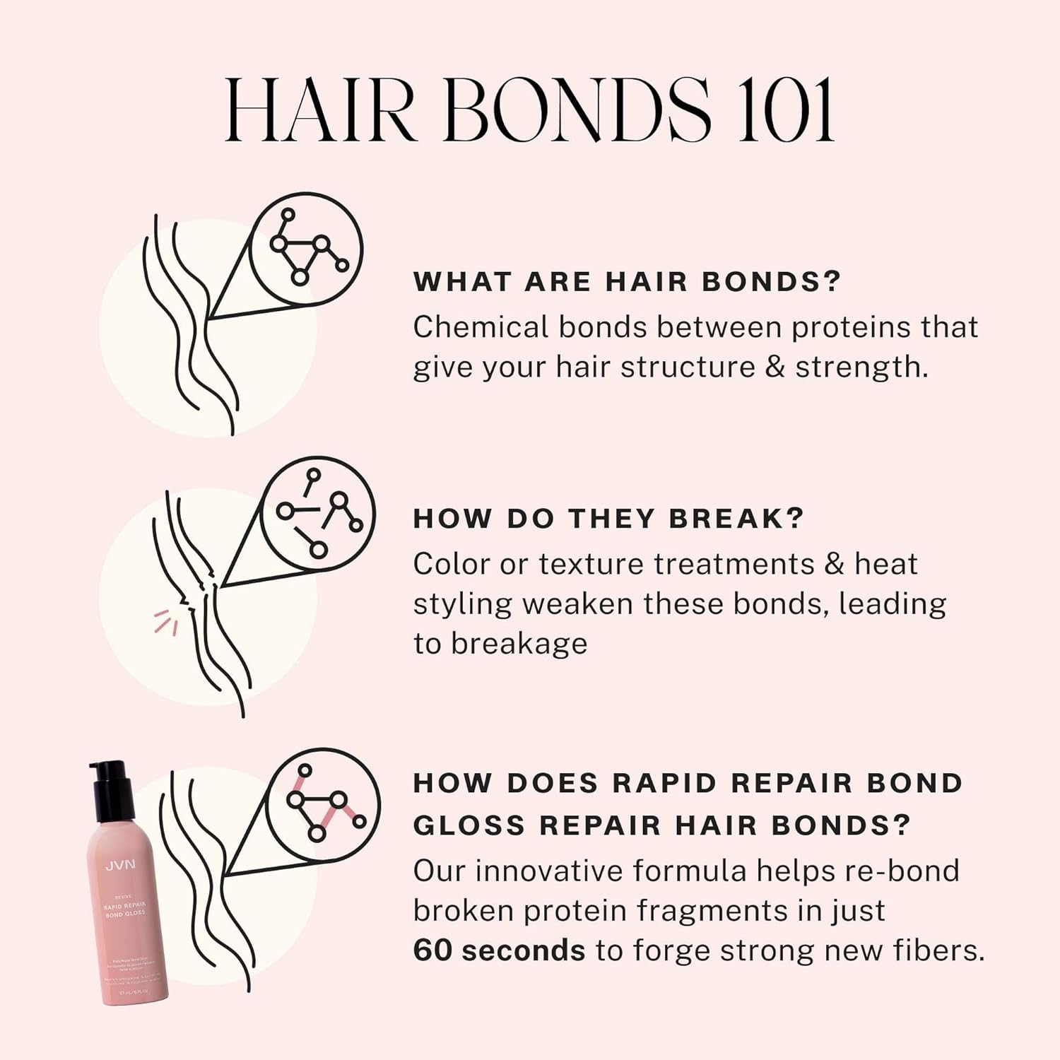 JVN Revive Rapid Repair Bond Gloss, 6 Fl Oz, Hair Shine Gloss Serum and Bond Repair Treatment, Repairs Damaged, Color Treated, or Fragile Hair, Silicone Free