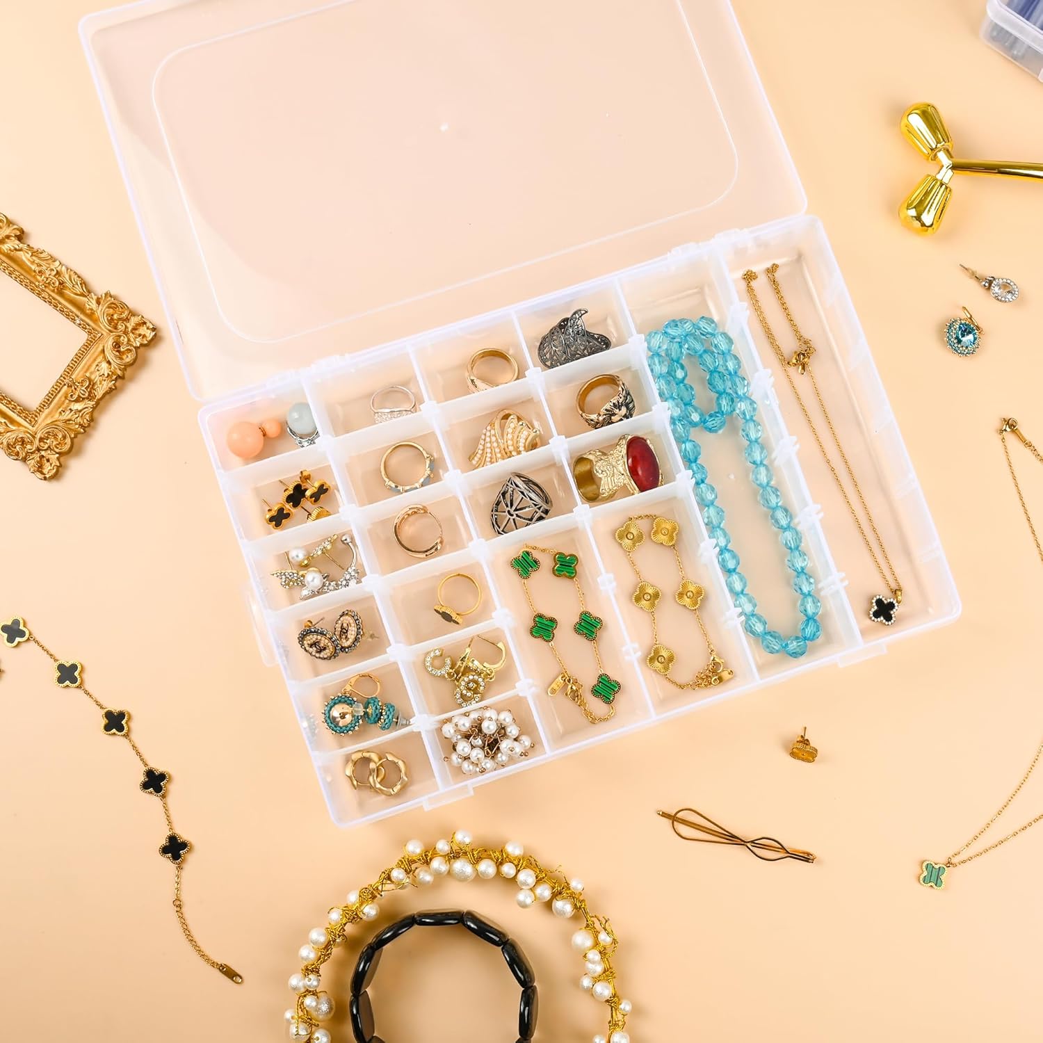 - VERSATILE STORAGE: Clear plastic organizer box with 36 adjustable compartments perfect for storing small items, crafting supplies, or collectibles