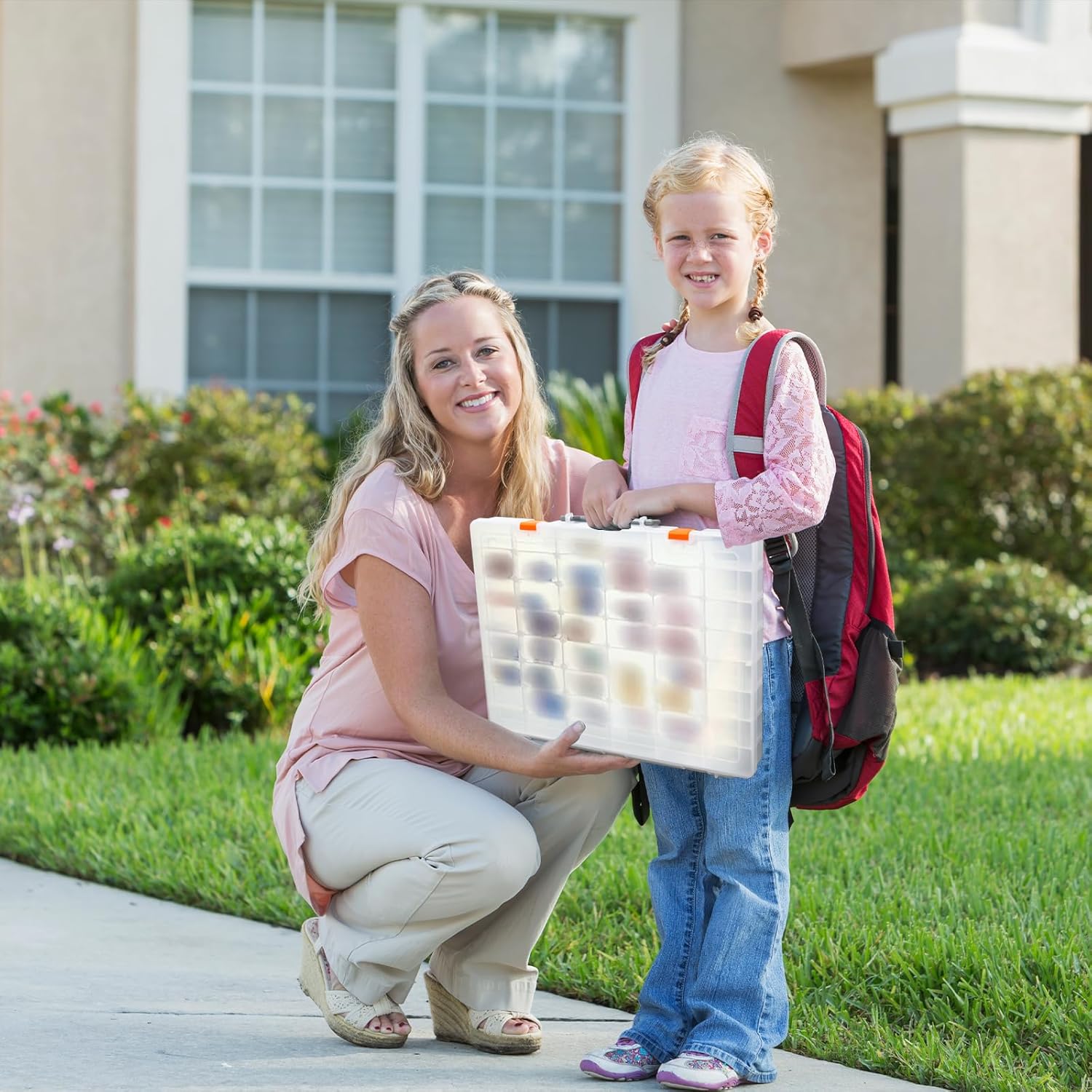 - Thoughtful Design: The 48 grids plastic toy storage case comes with a snap button closure, ensuring it securely shuts, and is easy to open; It also features a sturdy and comfortable carrying handle, ideal for easy transport and storage, whether traveling or organizing at home