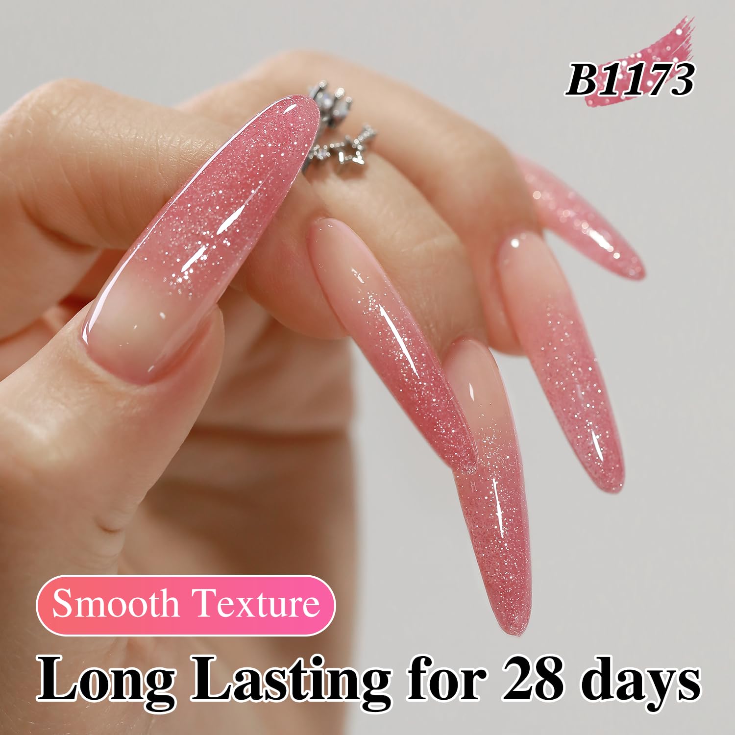 Double Rhythm 0.5Oz Glitter Gel Polish Shimmer Reflective Color for Nail Art Salon DIY Soak Off 15ml Nail Lamp Gel Polish at Home (Light Pink-B1173)
