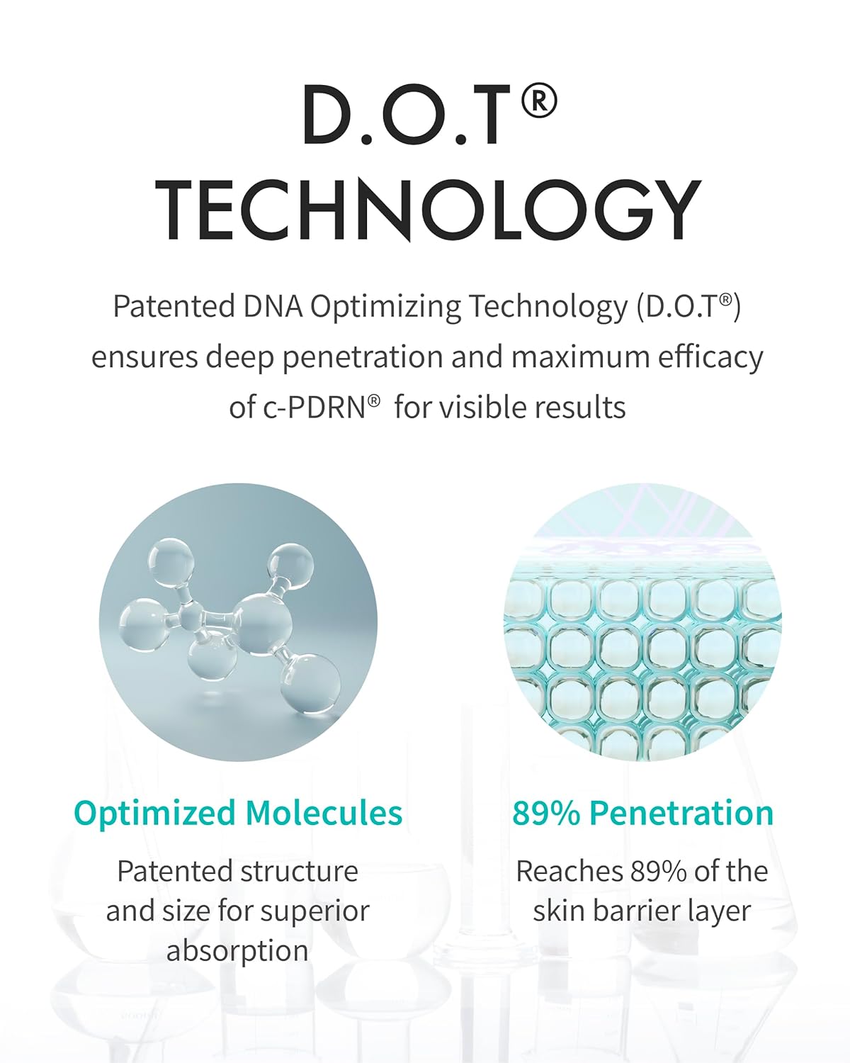 - POWERFUL C-PDRN TECHNOLOGY: Our patented c-PDRN formula (0.5% concentration) provides exceptional skin regeneration and recovery benefits. It deeply repairs damaged cells, stimulates collagen production, and improves elasticity and firmness. Fine lines and wrinkles are diminished, while overall skin texture is refined, revealing a smoother, more resilient, and youthful complexion.