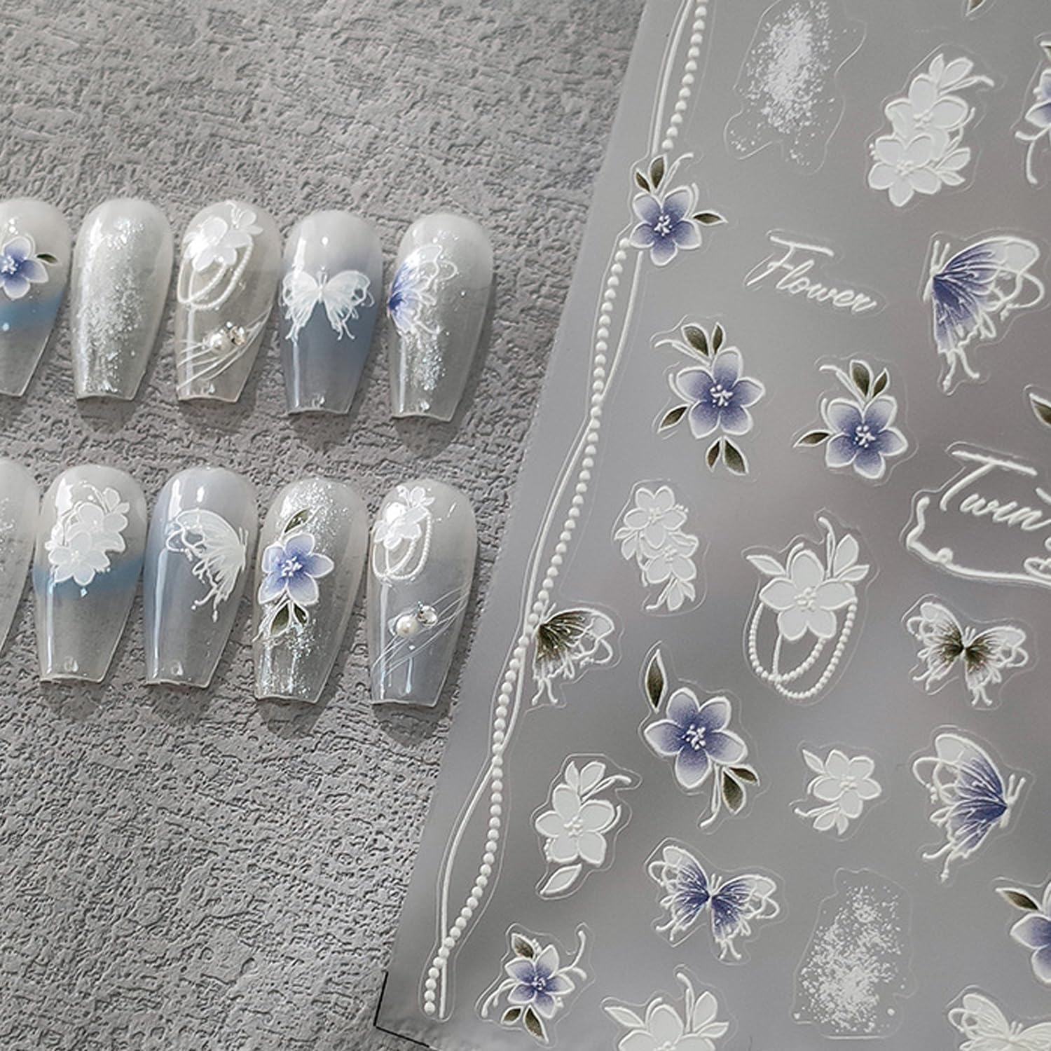 - Attractive Floral Nail Decals: 1 sheets of 5D embossing flower nail stickers, give you an advanced exquisite feeling. Floral butterfly elements nail decals, cute and beautiful carving patterns designs, suitable for your spring summer nail decorations