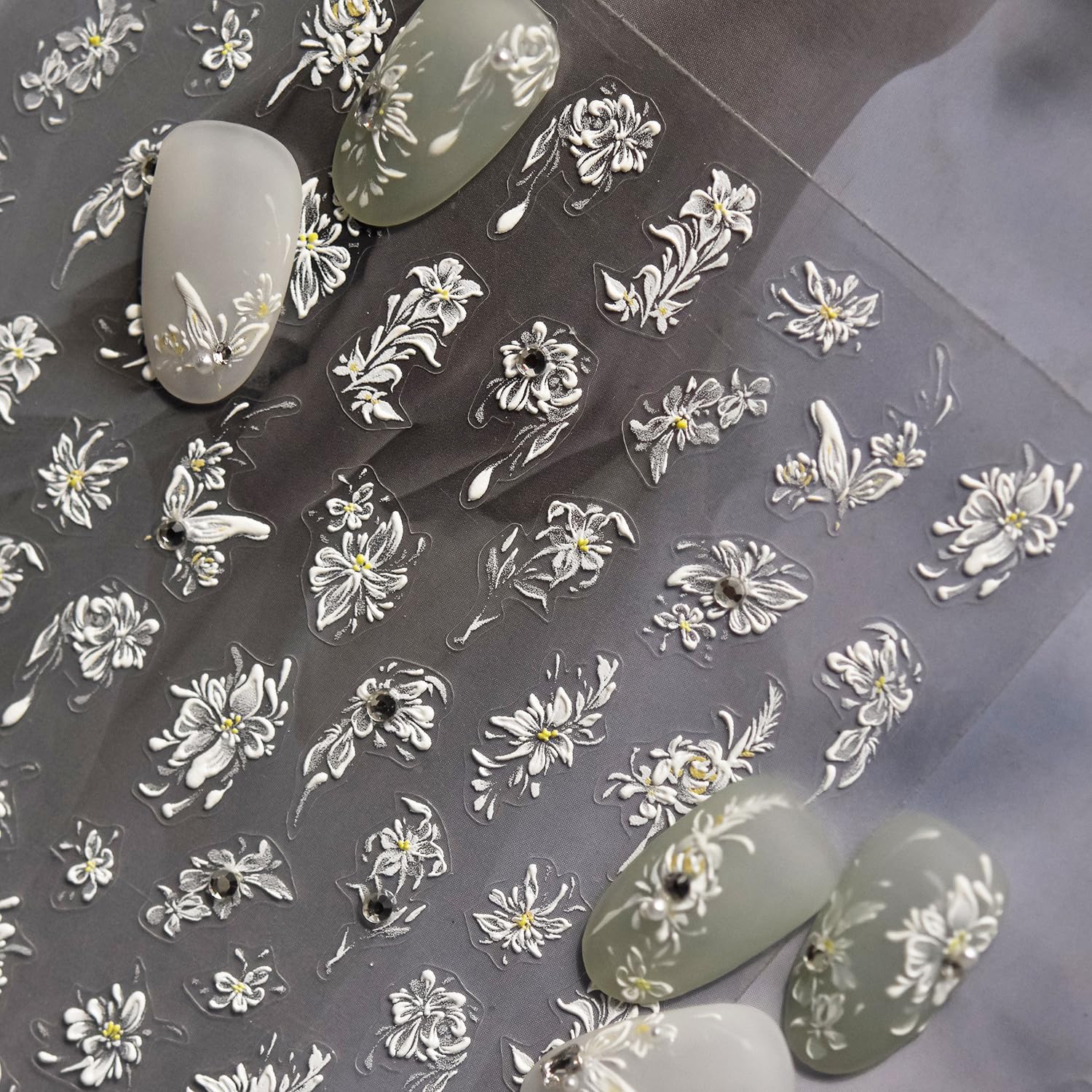 - Flower Nail Decals: 1 sheets of 5D Embossed white flower nail stickers give people an intuitive and advanced exquisite feeling. spring summer design nail decals are perfect for decorations for your false nails.that will make your fake nails more realistic and interesting!