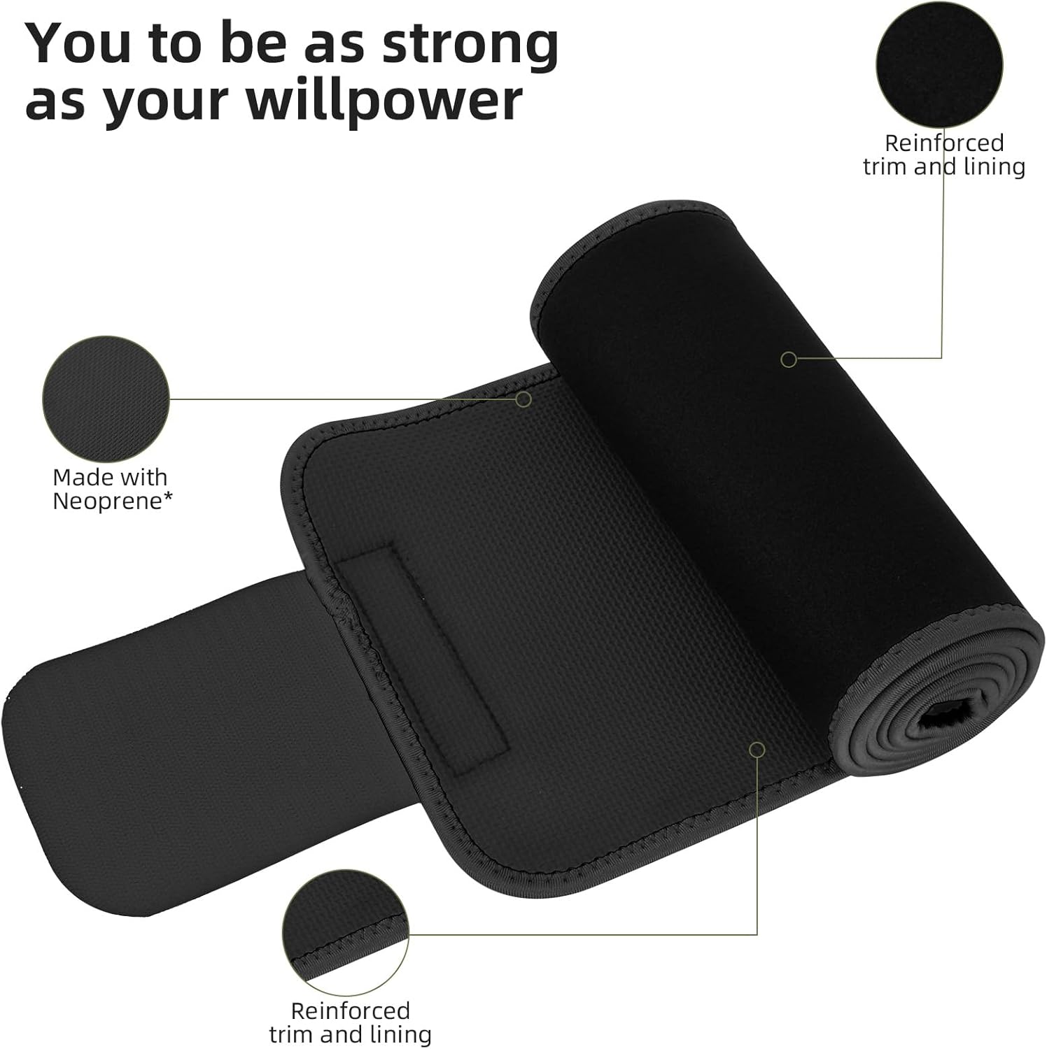 - [Made to Fit] Sweat belts for weight loss have (M,L,XL) three sizes so that, Designed to accommodate all shapes and sizes,our durable, reinforced trim and lining, and double velcro because we want to make sure this waist trainer stays your gym buddy for a long time.
