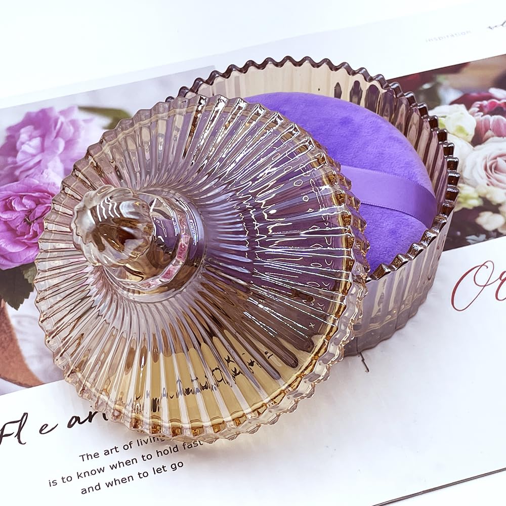 - Decorative Glass Powder Jar:The powder puff jar is made of high-quality glass, which is thick and sturdy. The design is elegant and luxurious for long-lasting beauty, making a instant décor upgrade for your dressing table, bathroom,nurseries, or vintage-themed rooms.