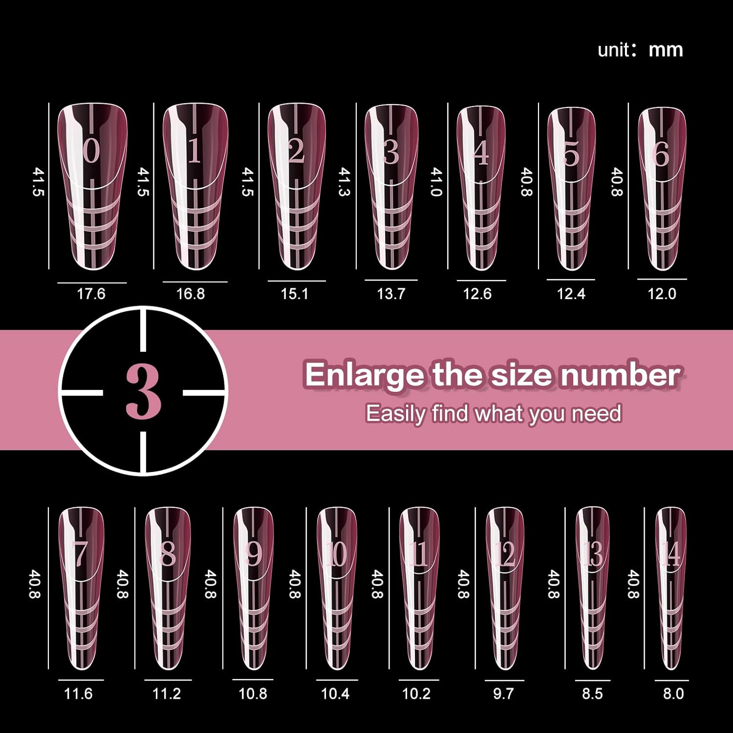 - Varied Size: numbered 0-14 on tips, easy to keep track of and convenient to choose the suitable size fit most nails
