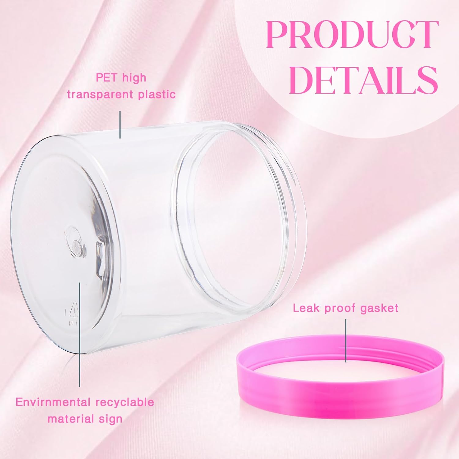 - What You Receive: there are 4 pieces plastic jars with pink screw-on lids; They are durable and refillable, measuring about 16 oz in capacity
