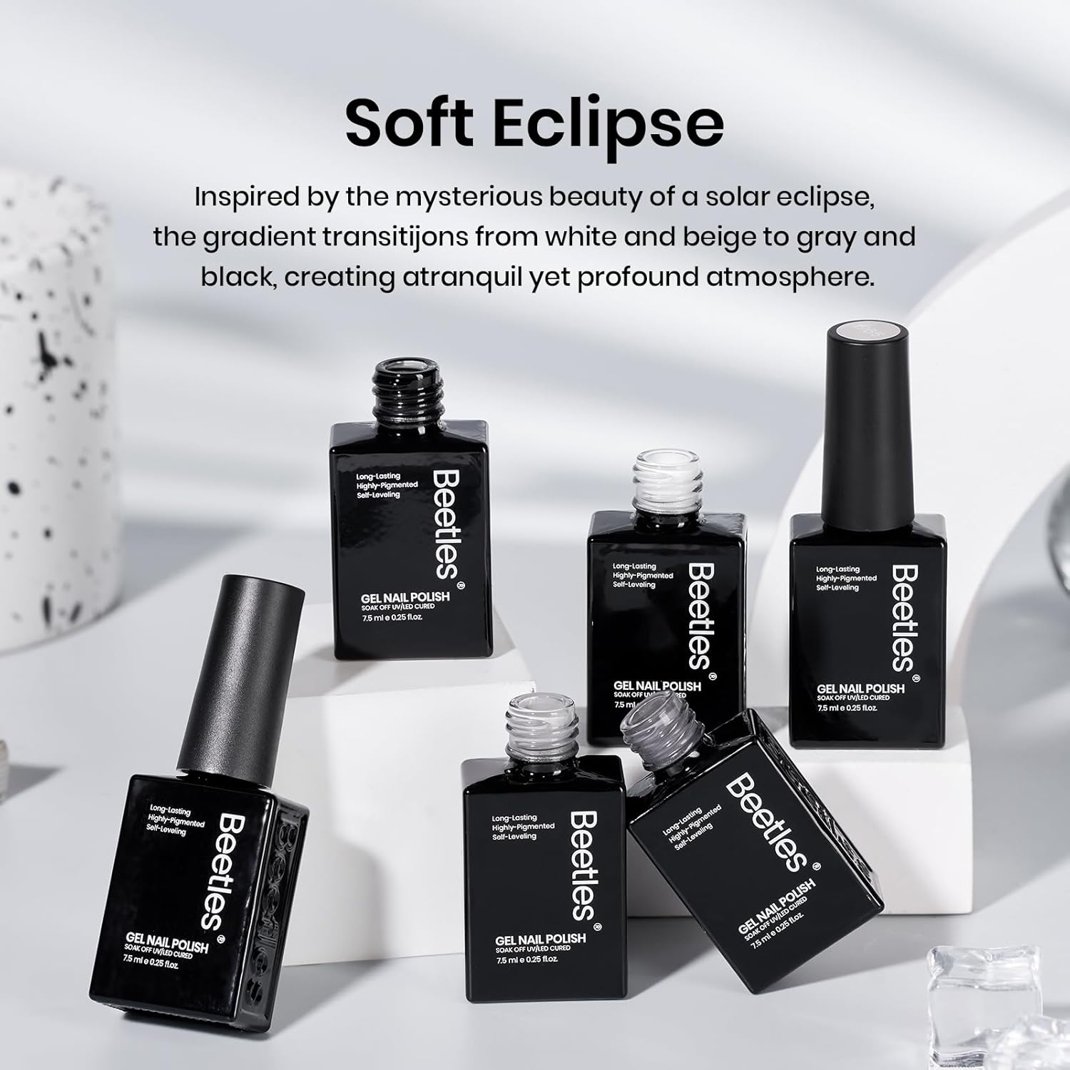 Beetles Gray Gel Polish Set 6 Colors White Black Nude Neutral Gray Milky Gel Nail Polish Kit Soak off Uv Led Lamp Needed Manicure DIY Home Gifts for Women Soft Eclipse