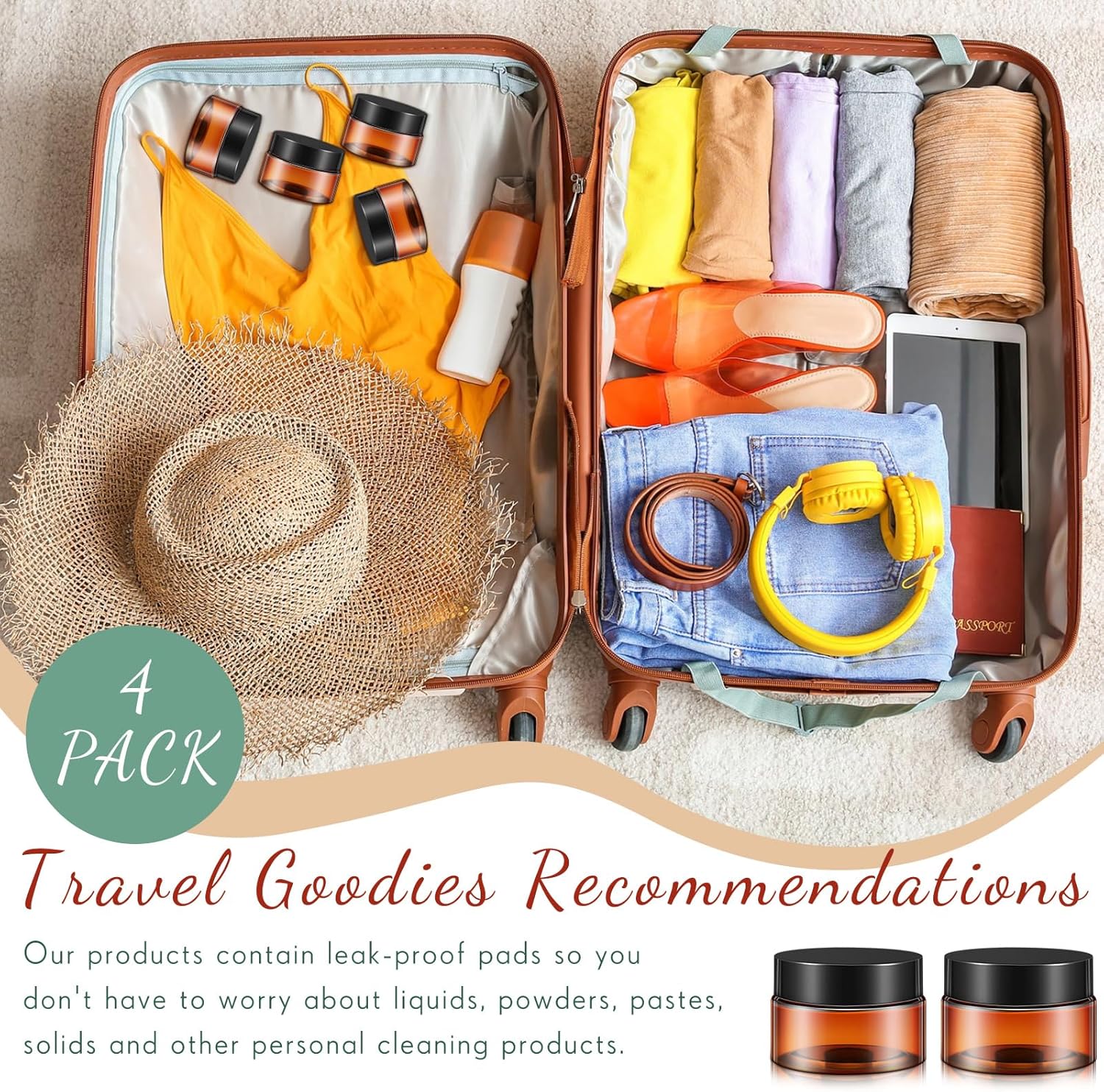 SATINIOR 36 Pieces 1 oz Plastic Jars with Lids Wide Mouth Airtight Reusable Container Acrylic Cosmetic Small Jars for Lotions Ointments Travel Toiletries Creams Make up Storage(Amber)