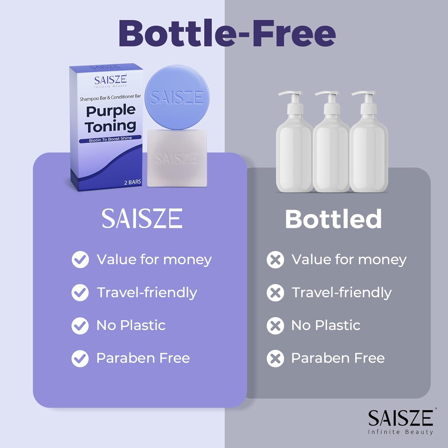 - Purple Toning: Specially formulated shampoo and conditioner bar designed to neutralize brassy and yellow tones in blonde, silver and gray hair