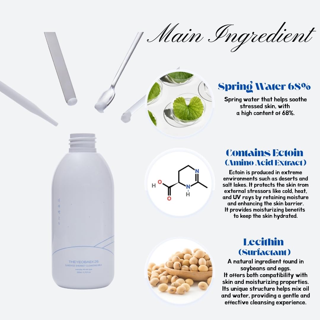 - [Korean Skincare – For Sensitive & Dry Skin] Formulated as a Korean cleansing milk for face, perfect for delicate and dry skin types. Helps maintain moisture while gently cleansing.