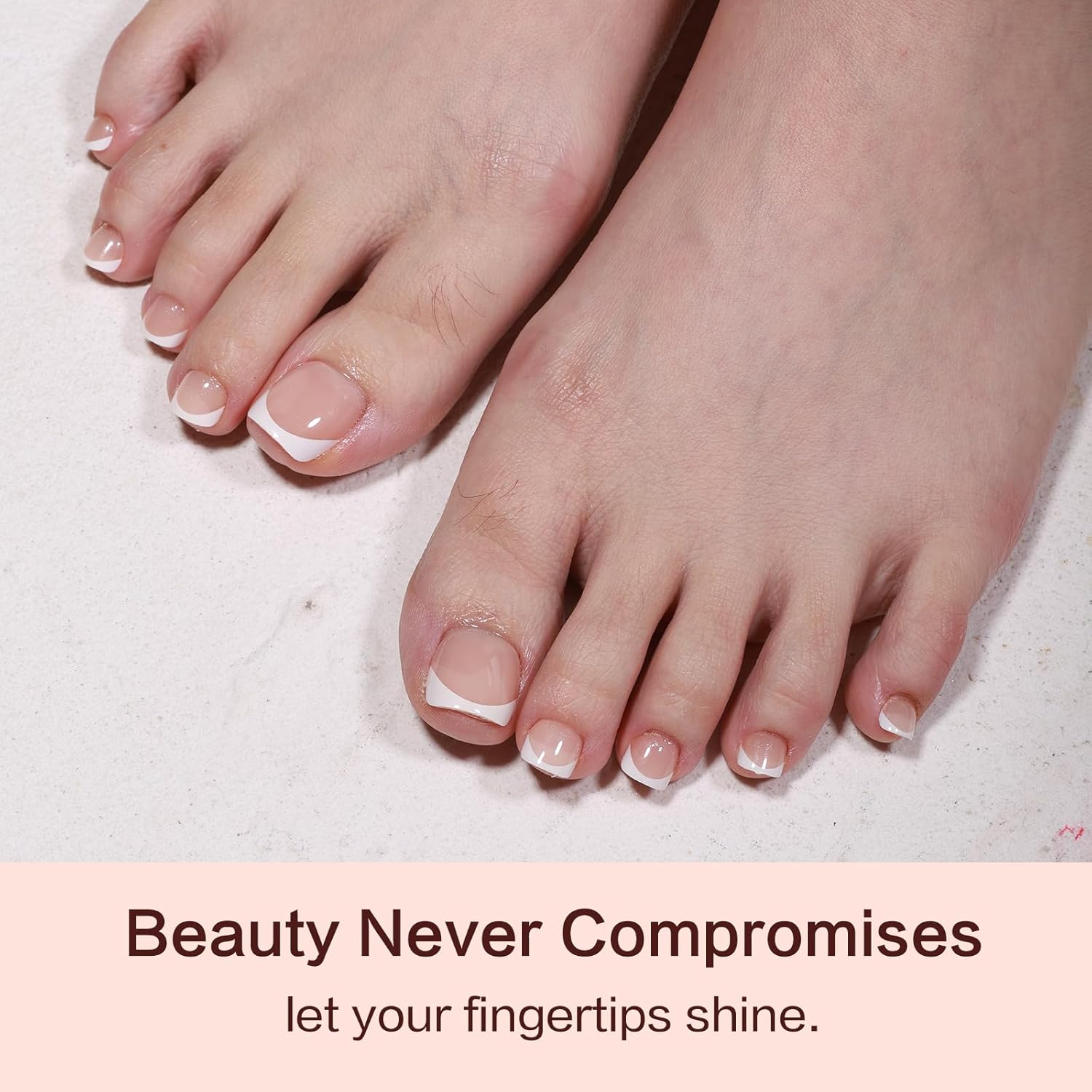 - 【Pre-Colored & Ready to Wear】GELLAKTIK’s french white press-on toe nails feature a natural base with a glossy finish, offering a polished and feminine look. No need for extra polish—just apply with gel glue, seal with a top coat, and enjoy flawless nails in minutes. Ideal for beginners and nail art enthusiasts alike!