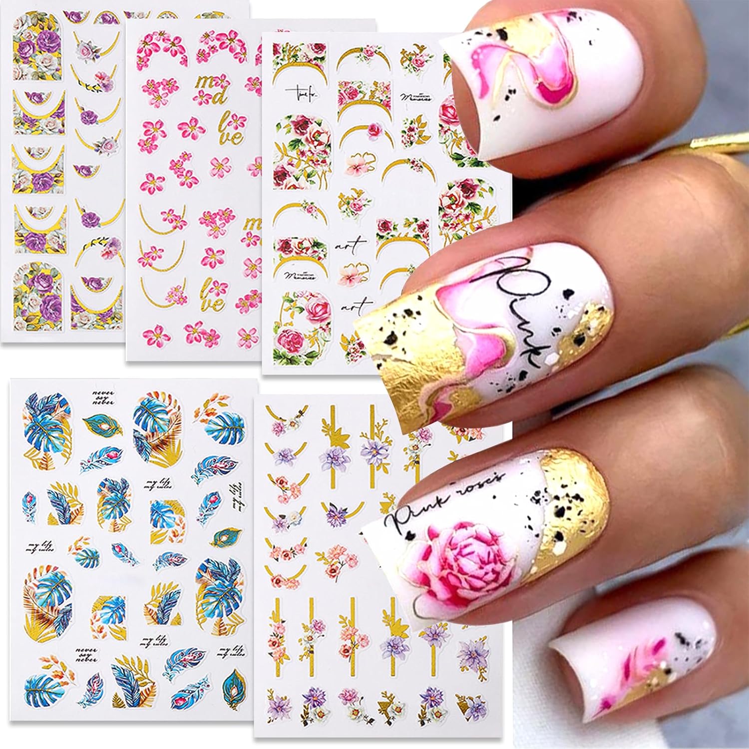 - Design: These floral nail stickers perfectly match the nails. The artistic flower and leaf patterns look fresh and elegant, full of spring and summer, and can be used to create different nail effects