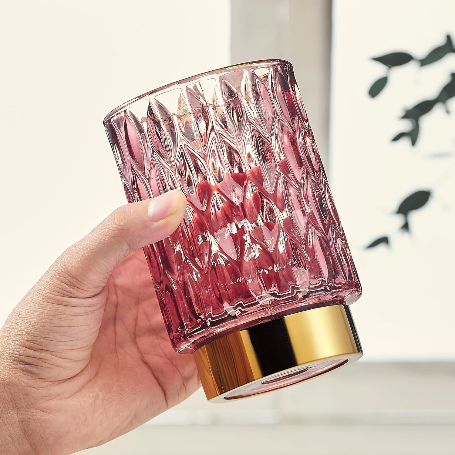 - Exquisite Design: Made of high-quality glass and a golden metal base.Its exquisite striped design on the glass body, complemented by the metal gold plating on the bottle mouth's top edge,sturdy and stylish.