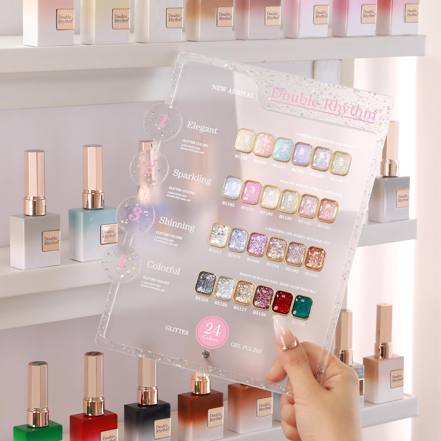 Double Rhythm 28Pcs 0.5Oz Glitter Gel Nail Polish Set Same Color Same Bottle Soak Off Kit Nail Art Manicure Salon DIY at Home (Sparkle Pearl Shimmer Collection-T24-9)