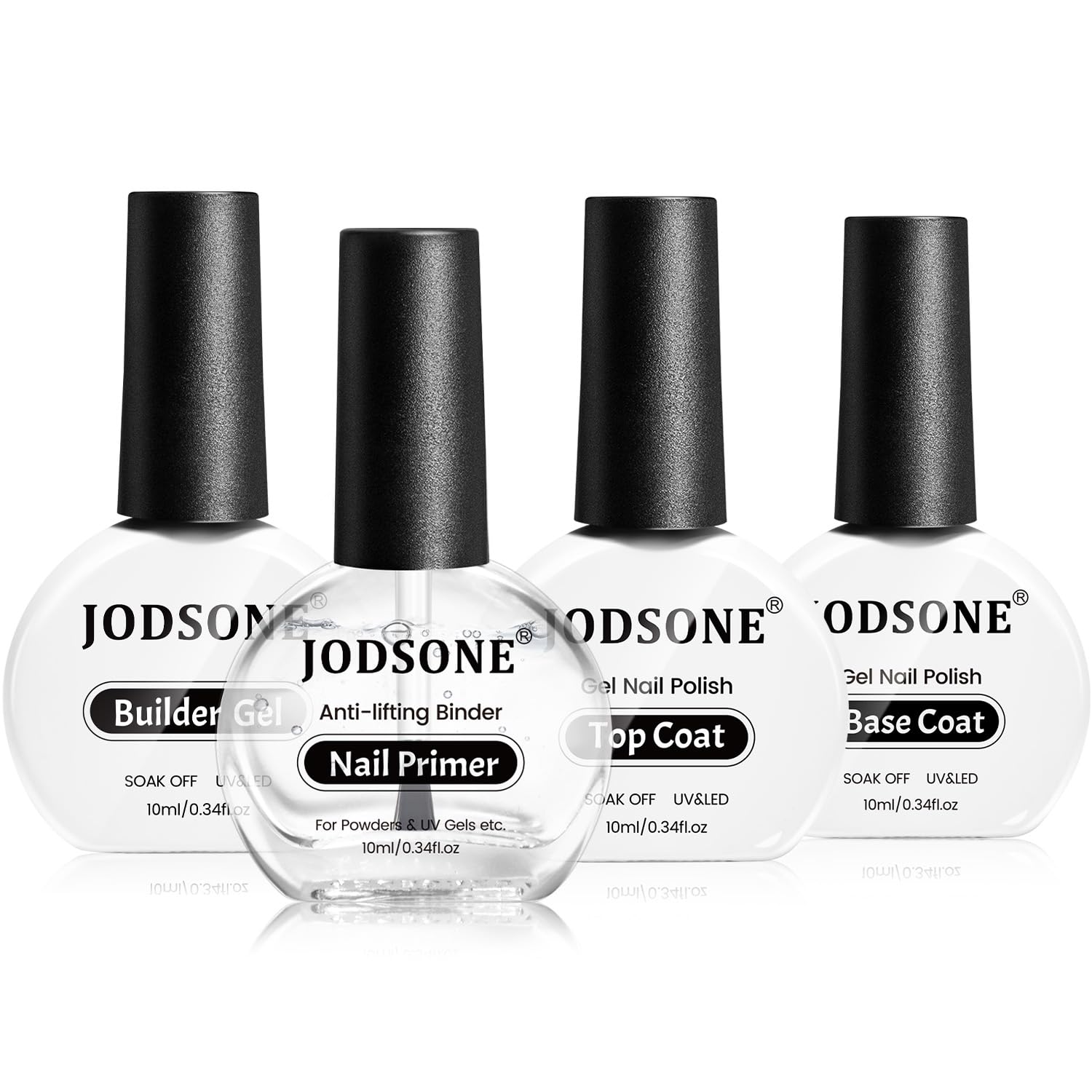 JODSONE 4 Bottle 10ML Nail Primer Base Coat Top Coat and Builder Gel Glossy Durable Long Lasting Gift for Girls at Home Salon Design