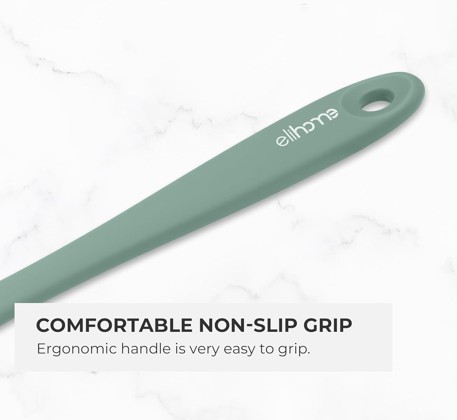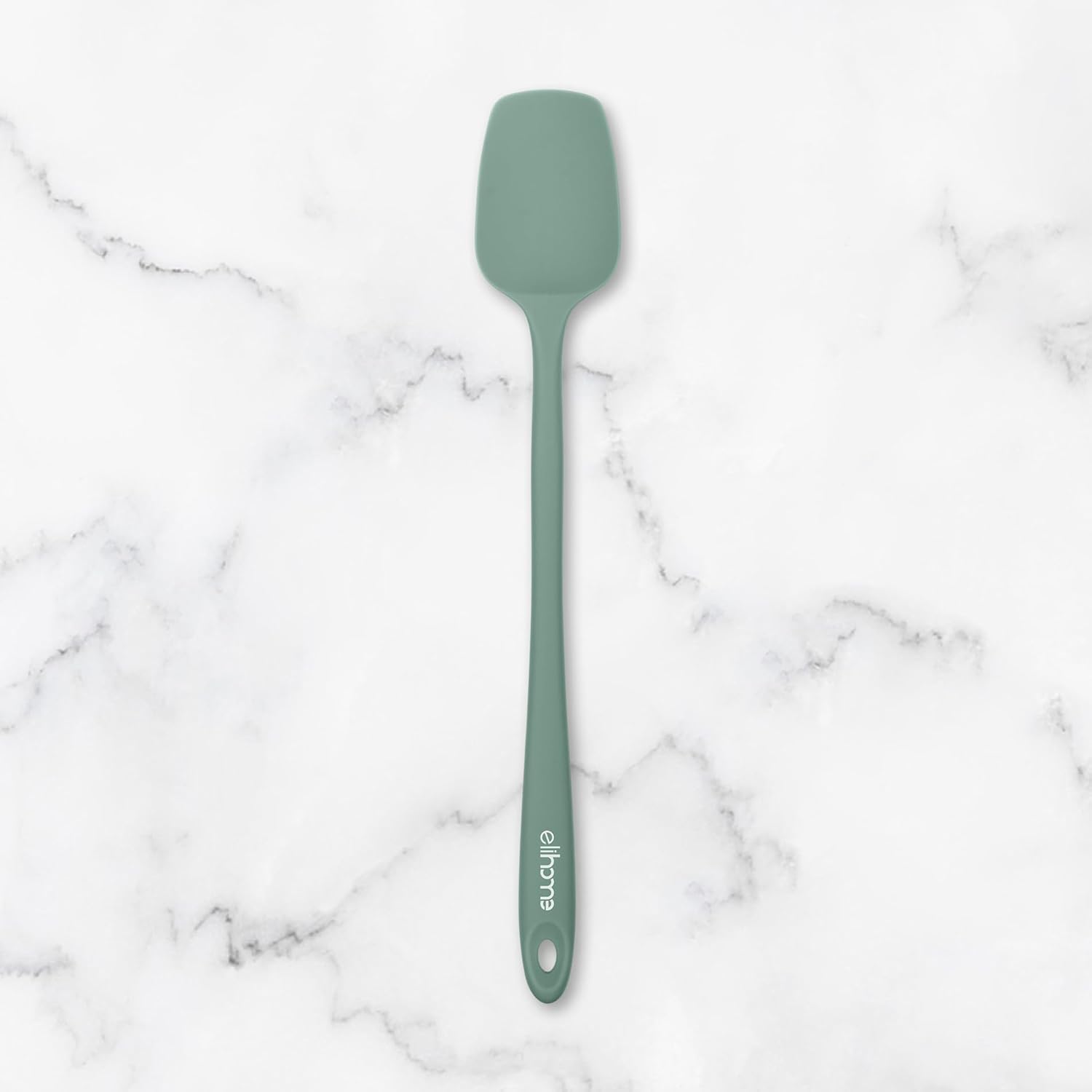 Elihome Skinny Silicone Spoonula - Non-Stick Heat Resistant Silicone Scraper Spatula for Mixing, Serving, Scraping, Stirring, and More - 11 Inch, Sage Green
