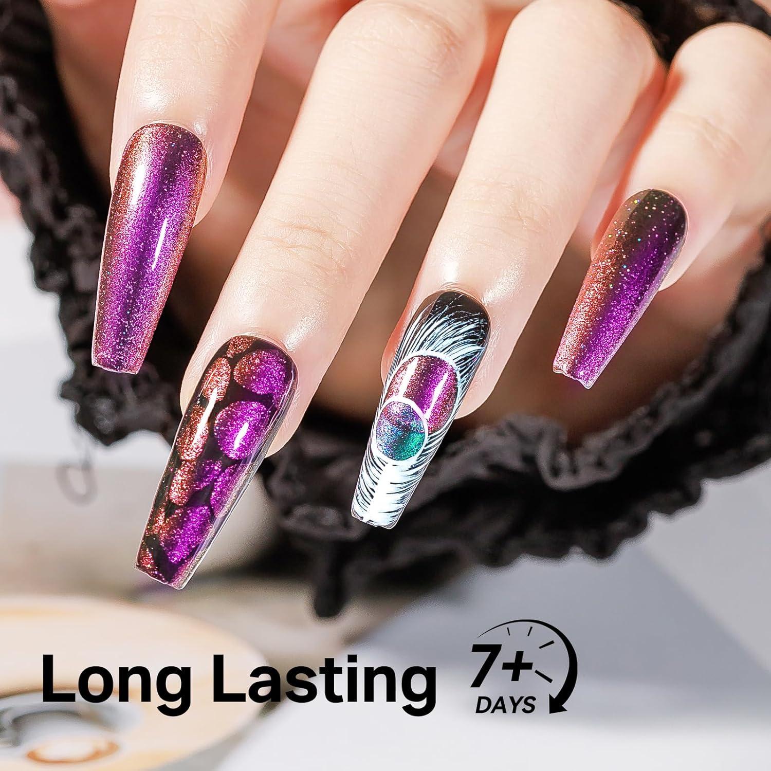 - Warm Tips: After applying magnetic nail polish, immediately use magnet to get cat eye effect and hold, to fix the effect until it's semi-dry. Avoid any water for 2 hours after applying the polish. Any problem, please contact us, we will try our best to solve the problem.