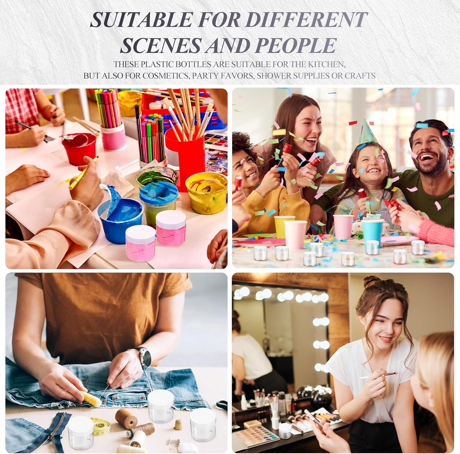 - Multi-functional Container: good way to store your homemade cosmetic, body lotion, moisturizers, face masks, specimen collection, putty, lotions, fragrances, DIY, party favors, or other crafts, good tools in daily life