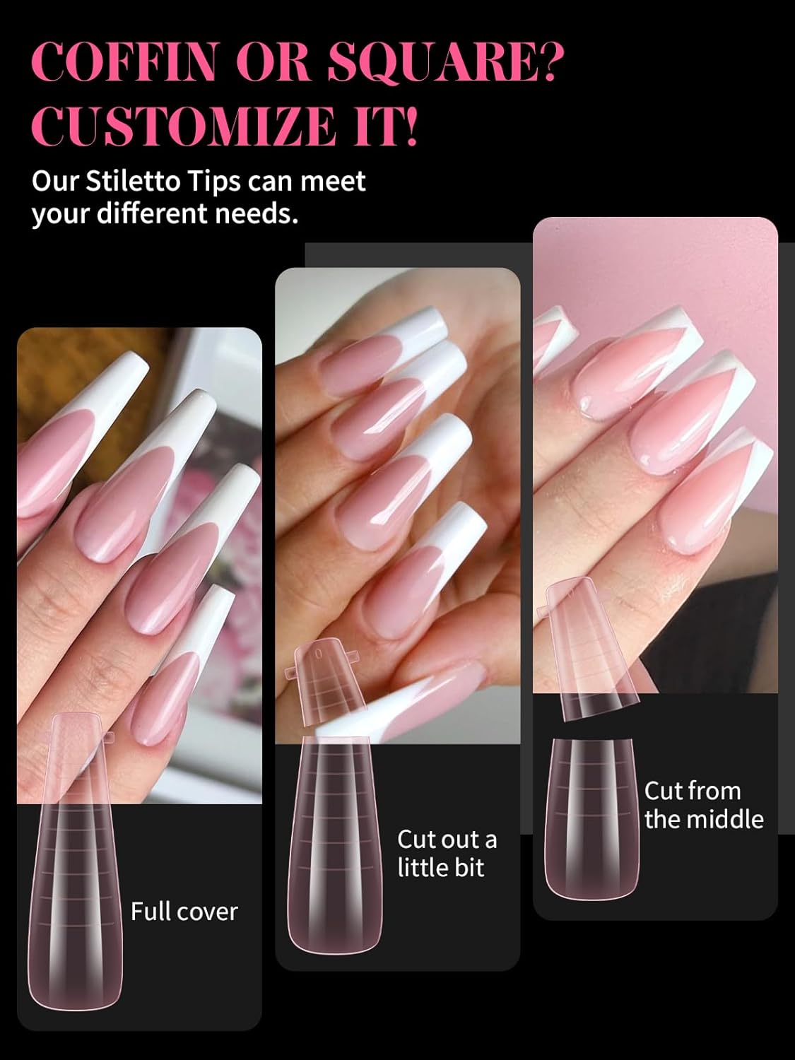 - 【Sturdy No C Curve Gel Nail Forms】Reusable extra long nail molds are made with high quality material, which is strong, tough, and reusable, providing you with a different lengths nail art experience that lasts.This artificial nails forms protective sleeve has a small handle on both sides, which is convenient for constructing gel nail extension nails, and will not stick to your hands, and can be easily removed after application.