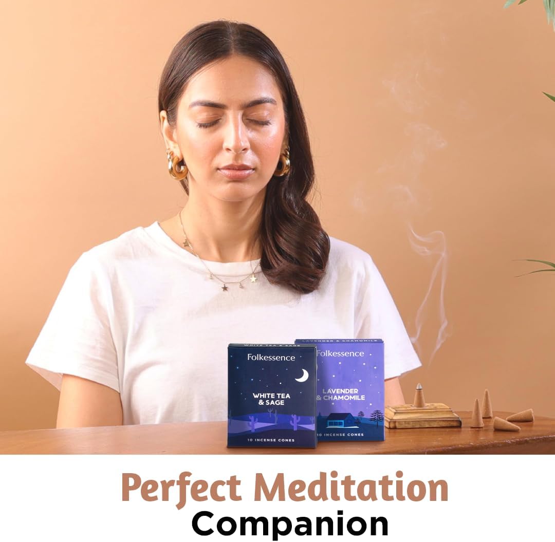 Folkulture Incense Cones Scented | Set of 2 Inscents-Cones (20 Cones) | Lavender, White Tea, Sage & Chamomile | Variety Pack Insence Cone for Relaxation and Meditation