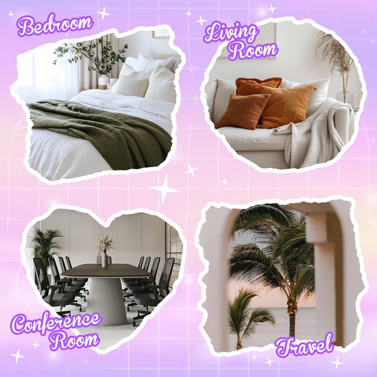 - Calming & Inspiring Blends: Experience six carefully curated scents – Sleep, Happy, Breathe, Inspire, Relax, and Focus On – designed to bring calm, happiness, clarity, and inspiration to your daily life.