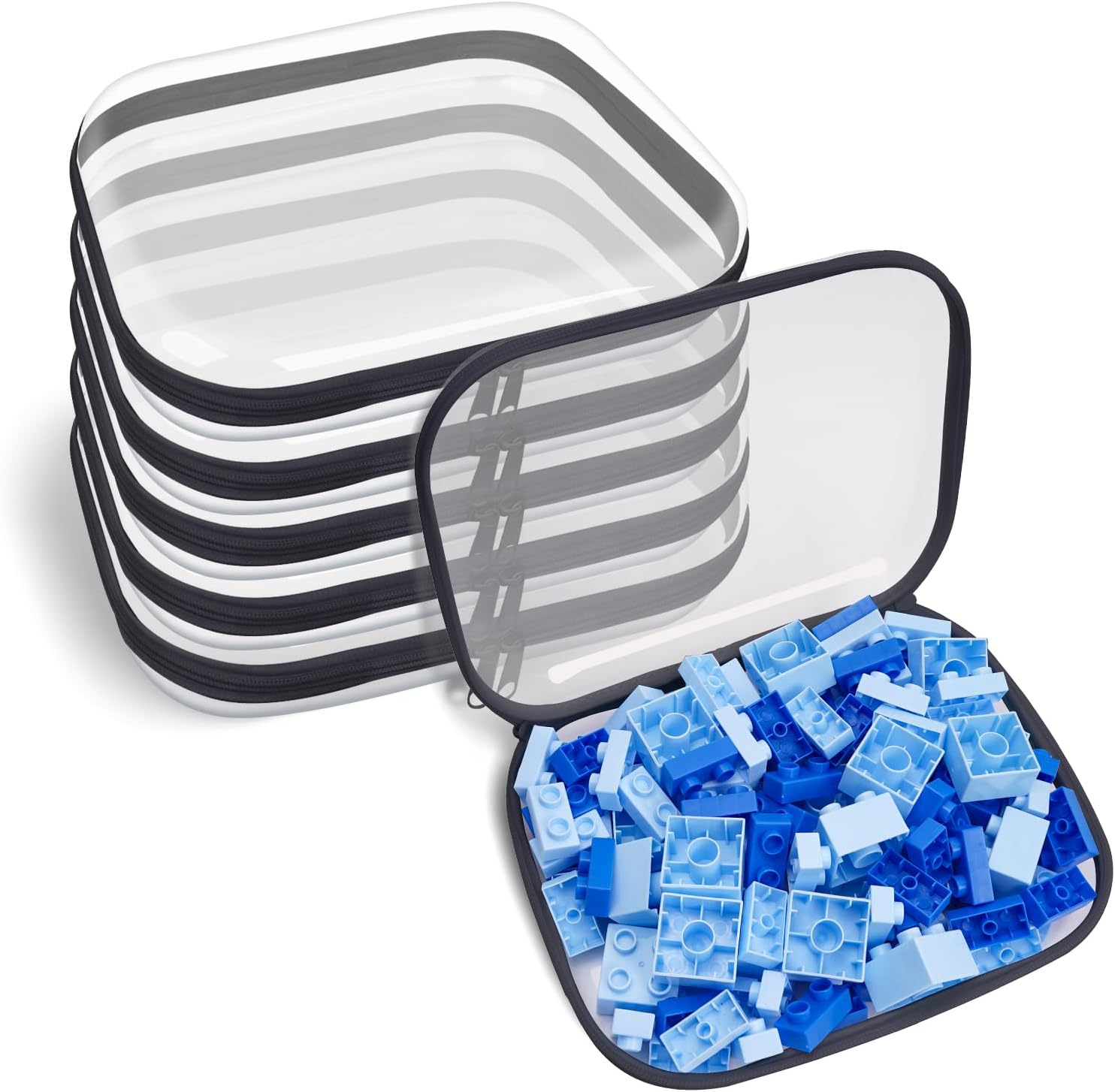 Clear Hard Plastic Zipper Case,Transparent Double Zippers Hard Pouch with 6pcs,Portable Travel Organizer Bin for Toy Storage