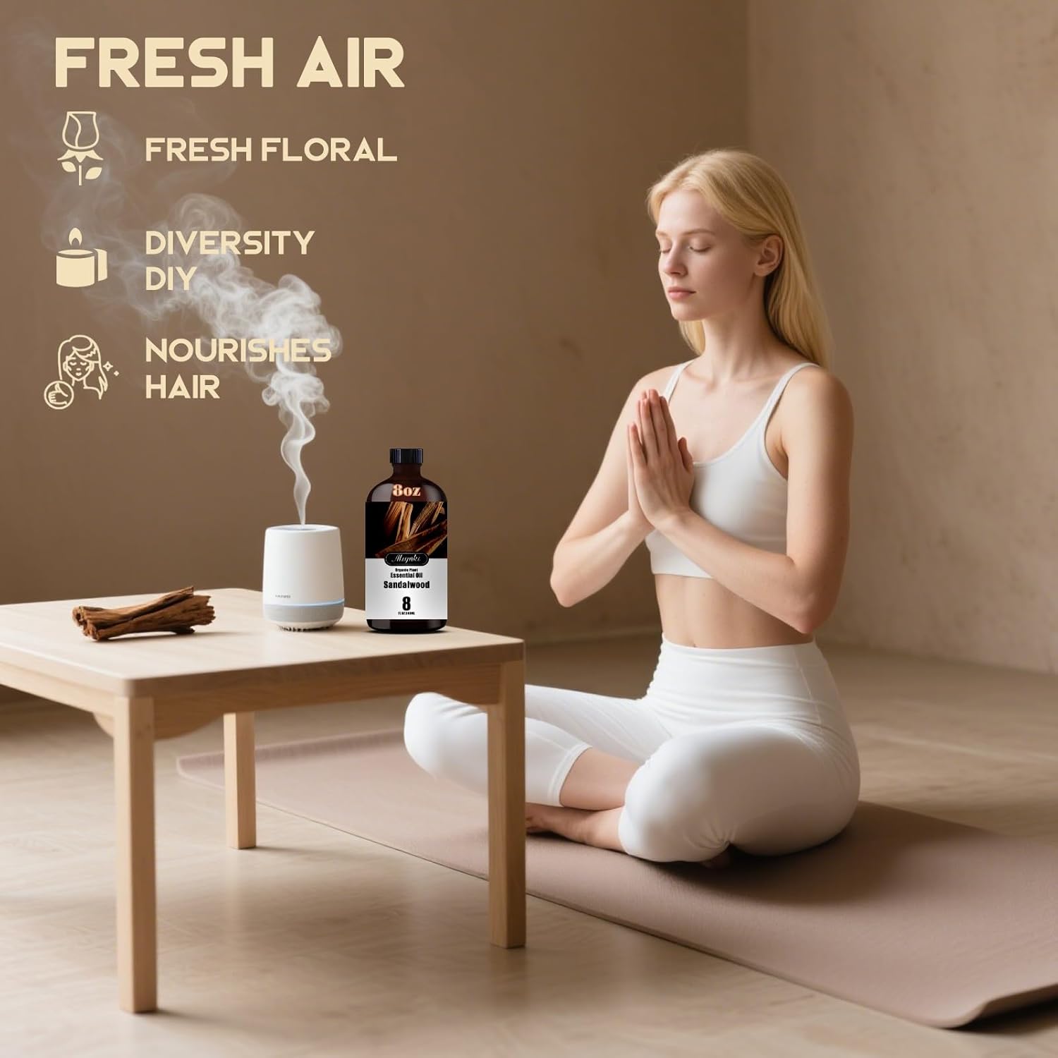 Sandalwood Fragrance Oil-Sandalwood Essential Oil 8.33oz (250ml)-100% Pure Natural Scent for Diffusers, Candles, Soap Making & Aromatherapy-Relaxing Home & Gift Essential Oil for Bath, Massage