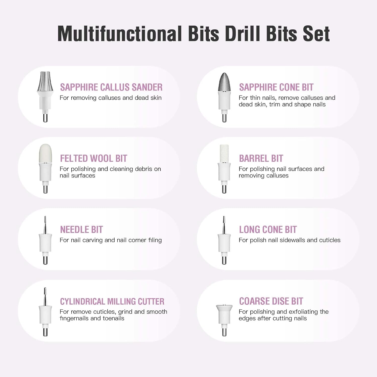 - 8 Grinding Heads for Customized Care - Includes fine sand heads for daily foot polishing and coarse sand heads for removing stubborn calluses. Removable design allows easy cleaning and quick head replacement for personalized pedicures