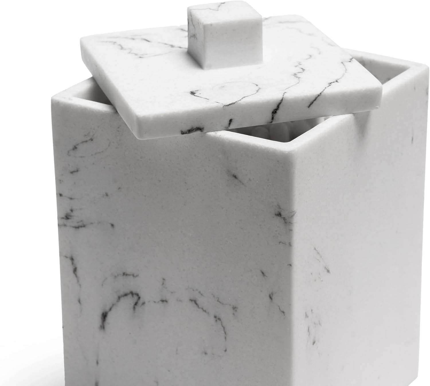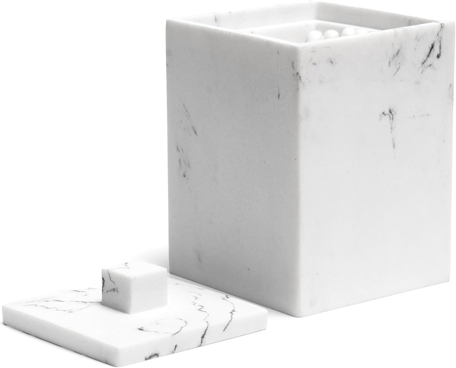 - High-quality Resin materials - Our cotton swab organizer made of 100% resin, The exterior looks like Ceramics and Marble, but it is more drop-resistant than Ceramics and glass. More economical and environmentally friendly than marble