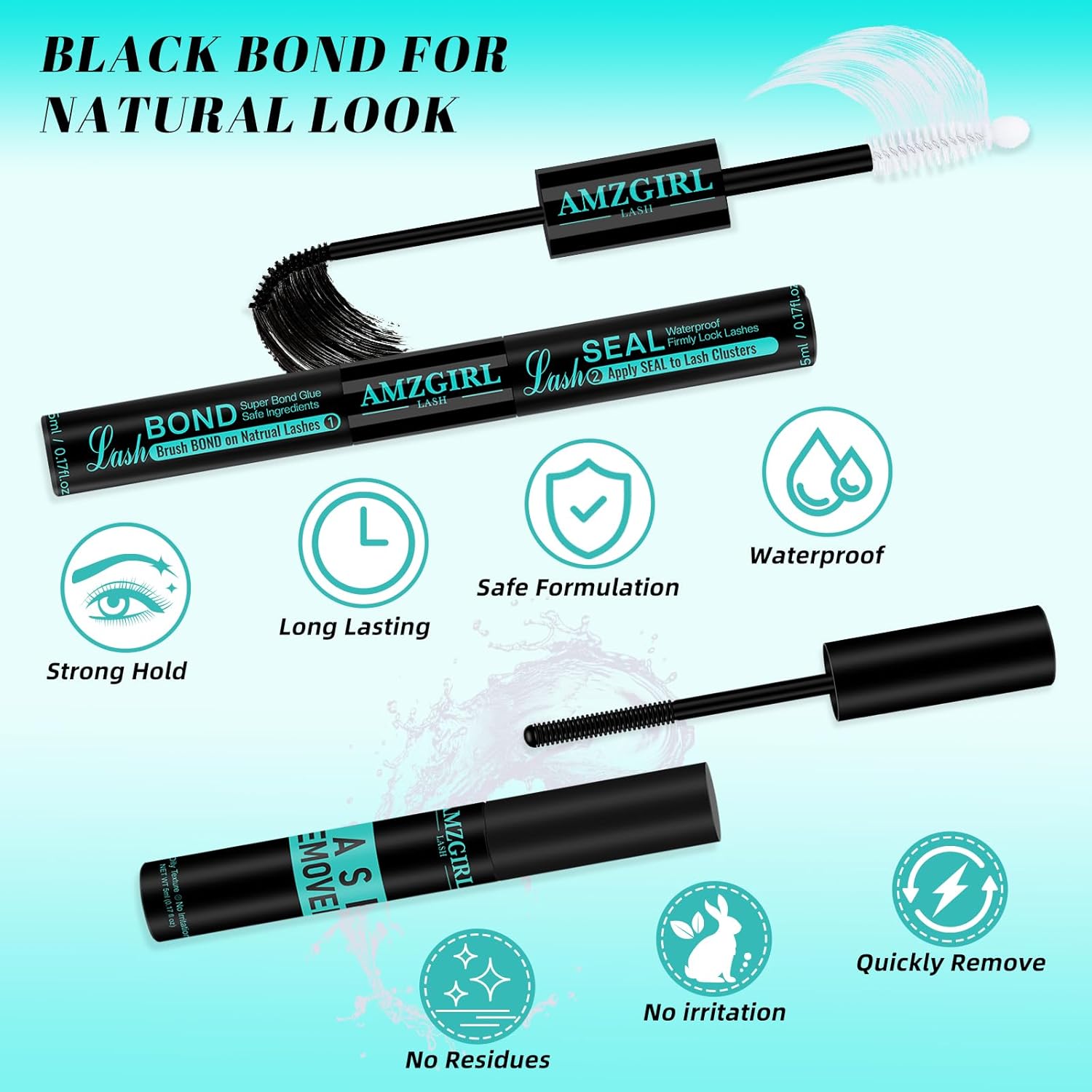 - Premium Cluster Lashes Applicator Tools : 2 in 1 eyelash extension bond and seal design in the lash kit for eyelash extensions beginners is waterproof and long lasting.The rose gold lash tweezers are designed with high-quality stainless steel and anti-static coating,and great grip make grab clusters lashes easier.