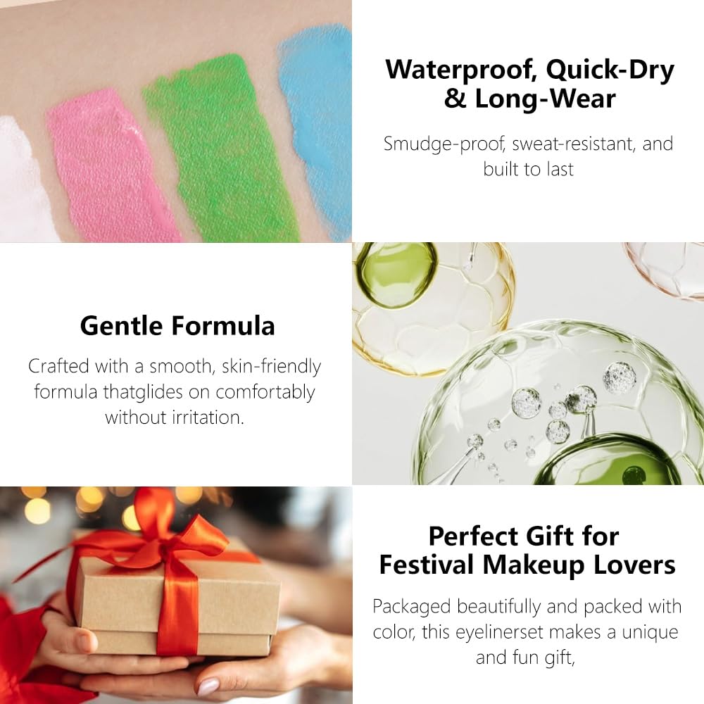 6 Pcs Colorful Matte Liquid Eyeshadow Eyeliner Set, White, Pink, Green, Blue, Purple, Dark Blue, Halloween Stage Clown Children's Makeup, Quick-Drying, Long-Lasting, Waterproof (6Pcs-Matte Colorful 2)