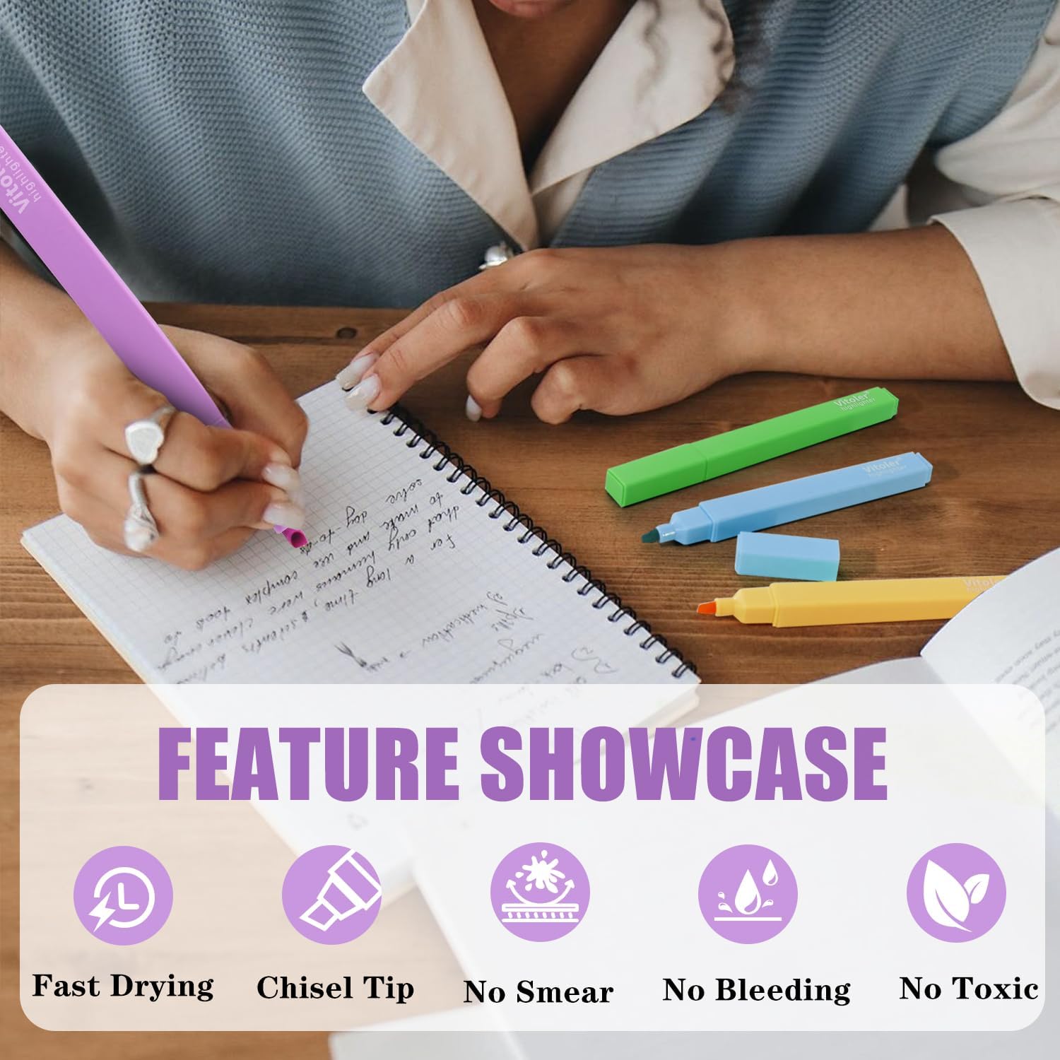 Vitoler Aesthetic Highlighters,10 Pcs Chisel Tip,Dry Fast Easy to Hold,Highlighter Set of Cute Office Desk Accessories, School Supplies