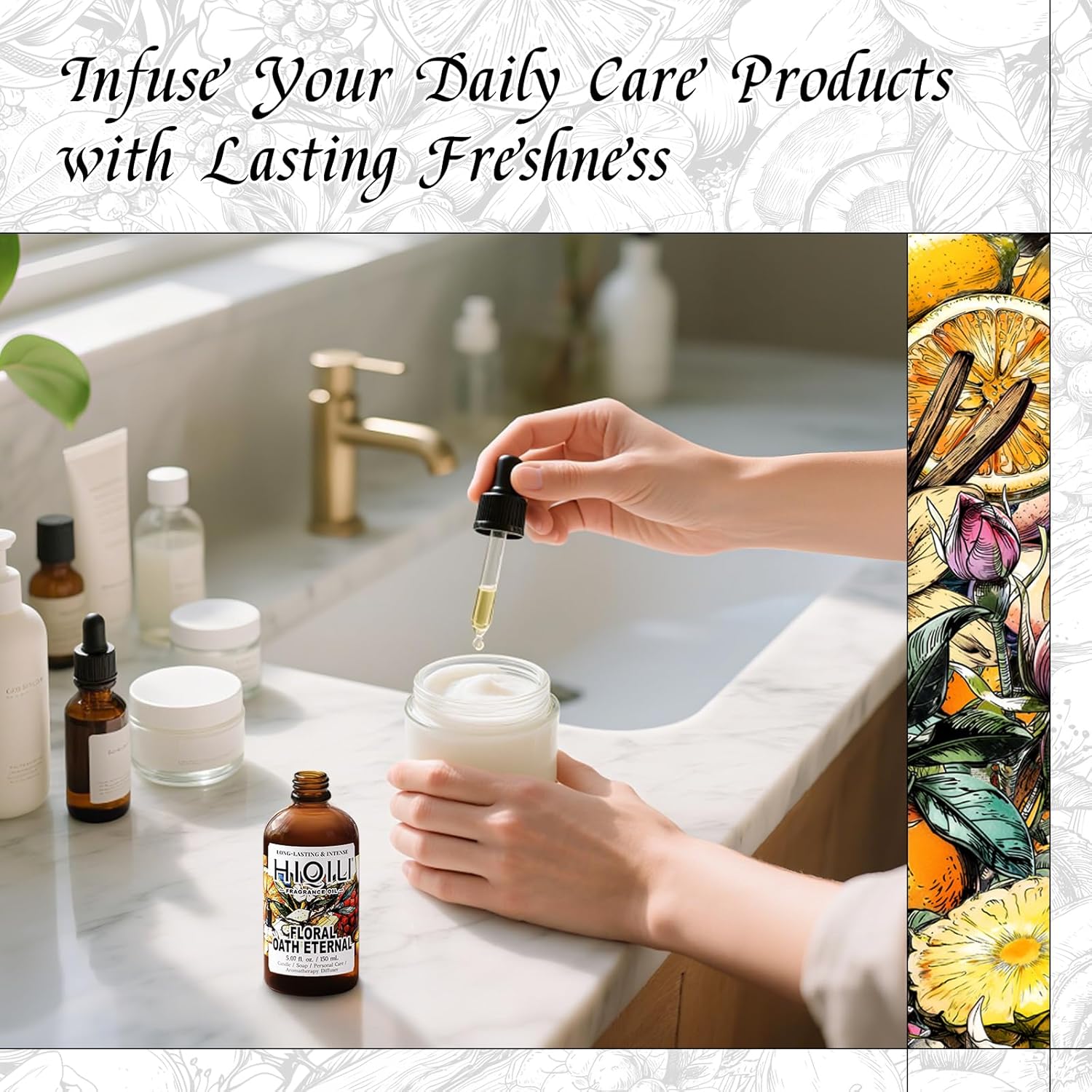 HIQILI Floral Oath Eternal Fragrance Oil, Jasmine & Peach Scents, Perfect for Soap & Candle Making, Essential Oil Diffusers, Skin and Body Scenting - 5.07 Fl Oz
