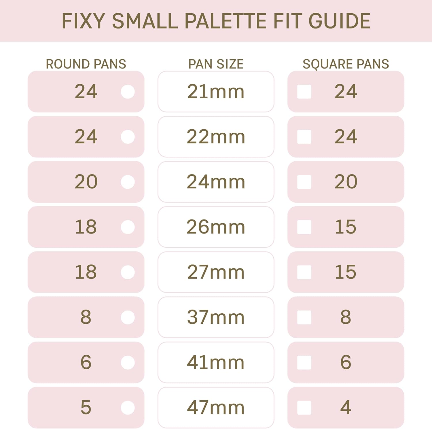 - BUILD YOUR DREAM MAKEUP KIT: Tired of makeup chaos? FIXY's medium-sized, customizable magnetic palette lets you easily organize all your favorite eyeshadows, blushes, bronzers, and powders in one sleek, clutter-free space. Includes 20 metal pans to start customizing instantly!