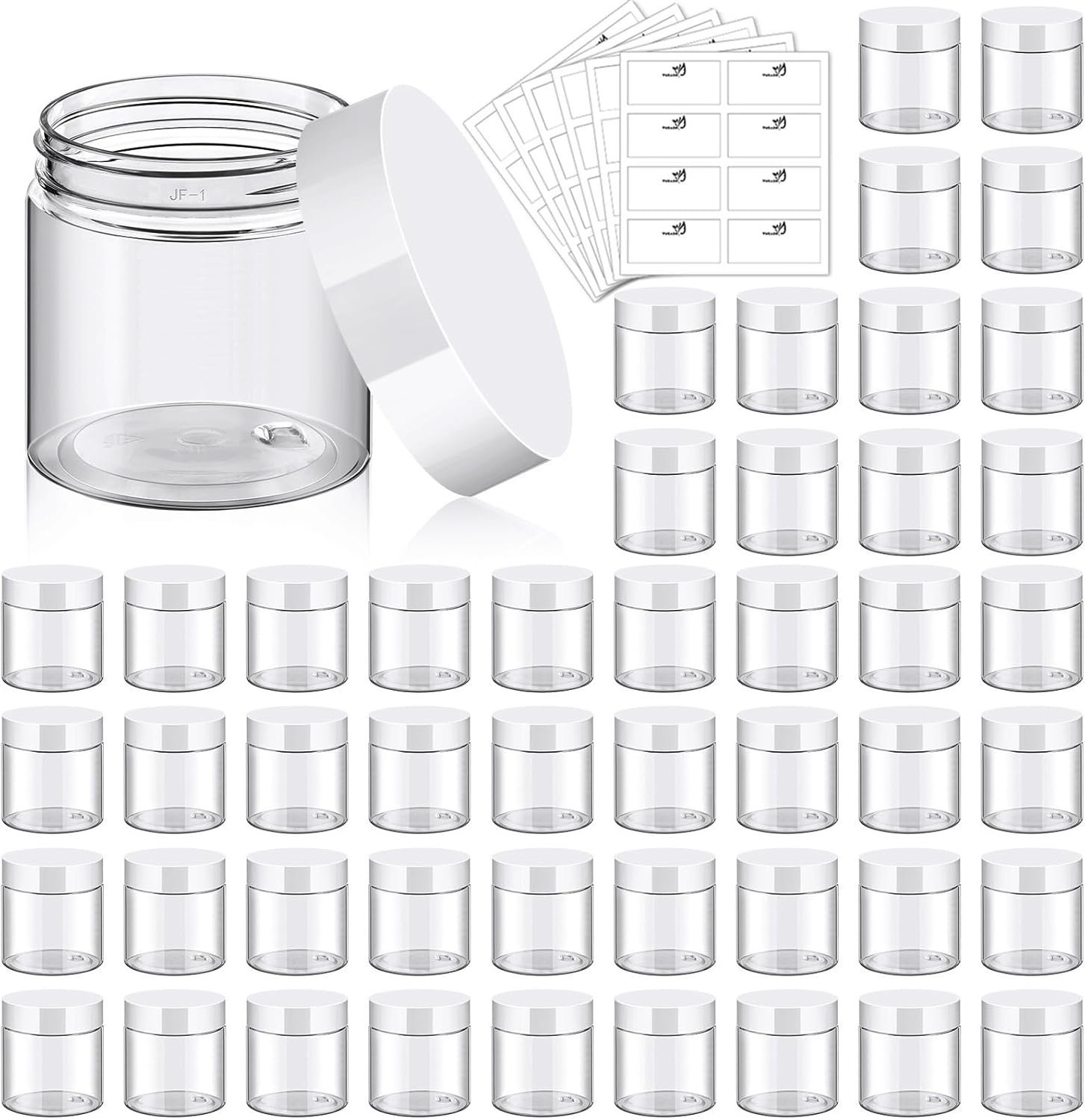 TUZAZO 48 Pack 4 Oz Plastic Container Jars with Lids and Labels BPA Free, Empty Round Clear Cosmetic Containers Plastic Slime Jars for Lotion, Cream, Ointments, Body Butter, Travel Storage (48)