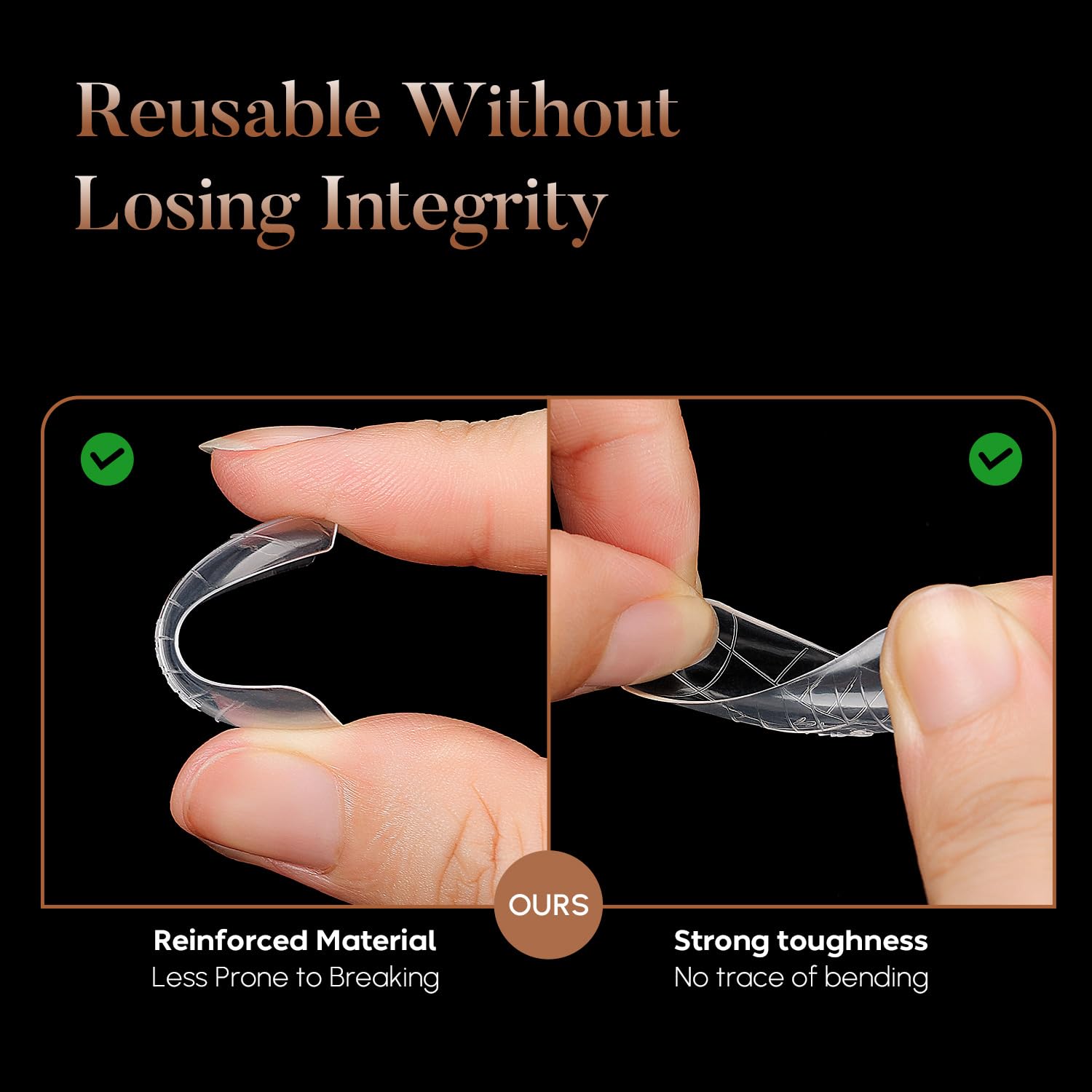 - Salon-Quality Material: Crafted from premium ABS material, our gel dual forms are thin, natural-looking, yet durable and bendable without creasing. The flexible silicone tips offer a gentle texture that is easy to remove without damaging your nail extensions.